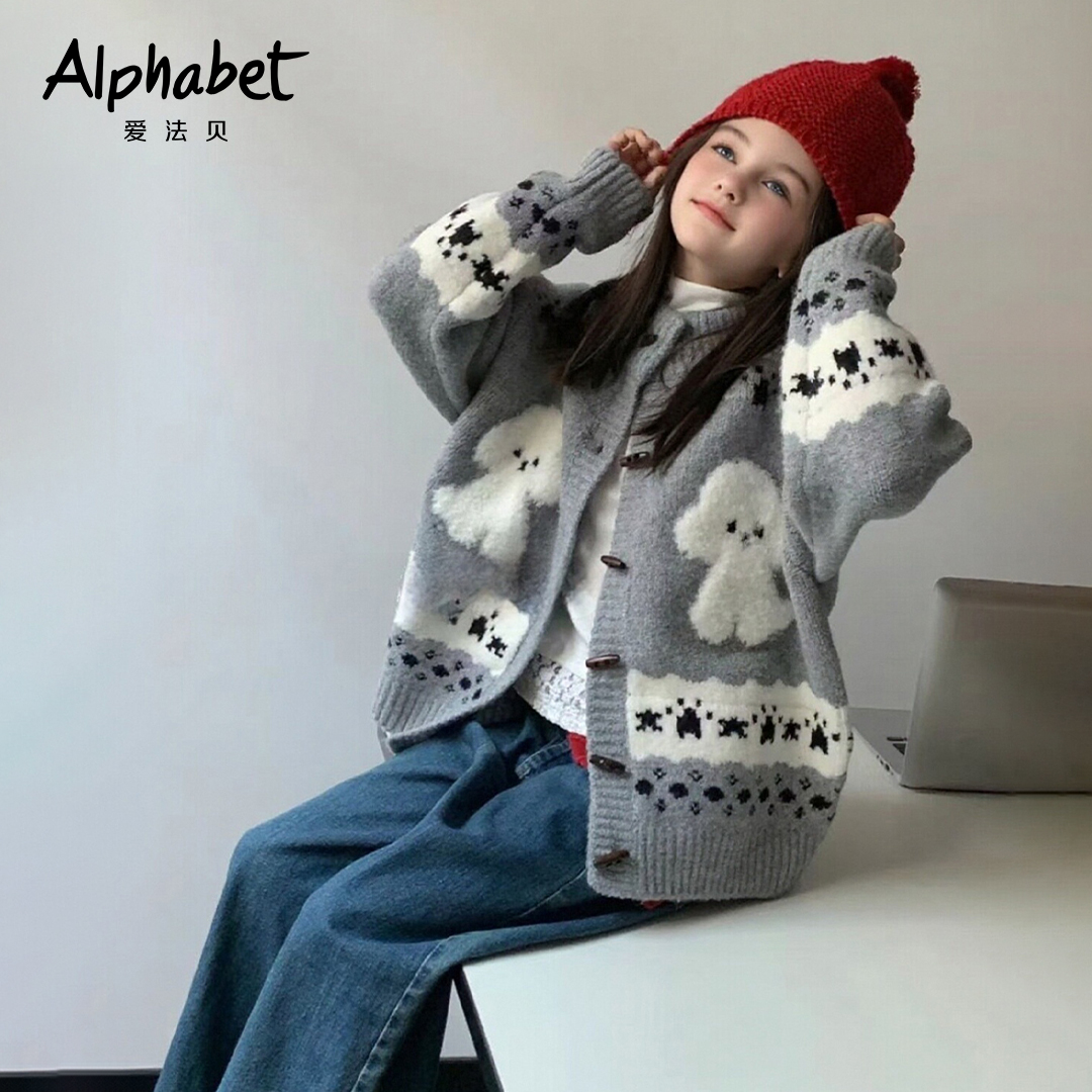 小女孩春秋百搭外套潮 儿童洋气线衫 爱法贝25秋新款 女童针织开衫