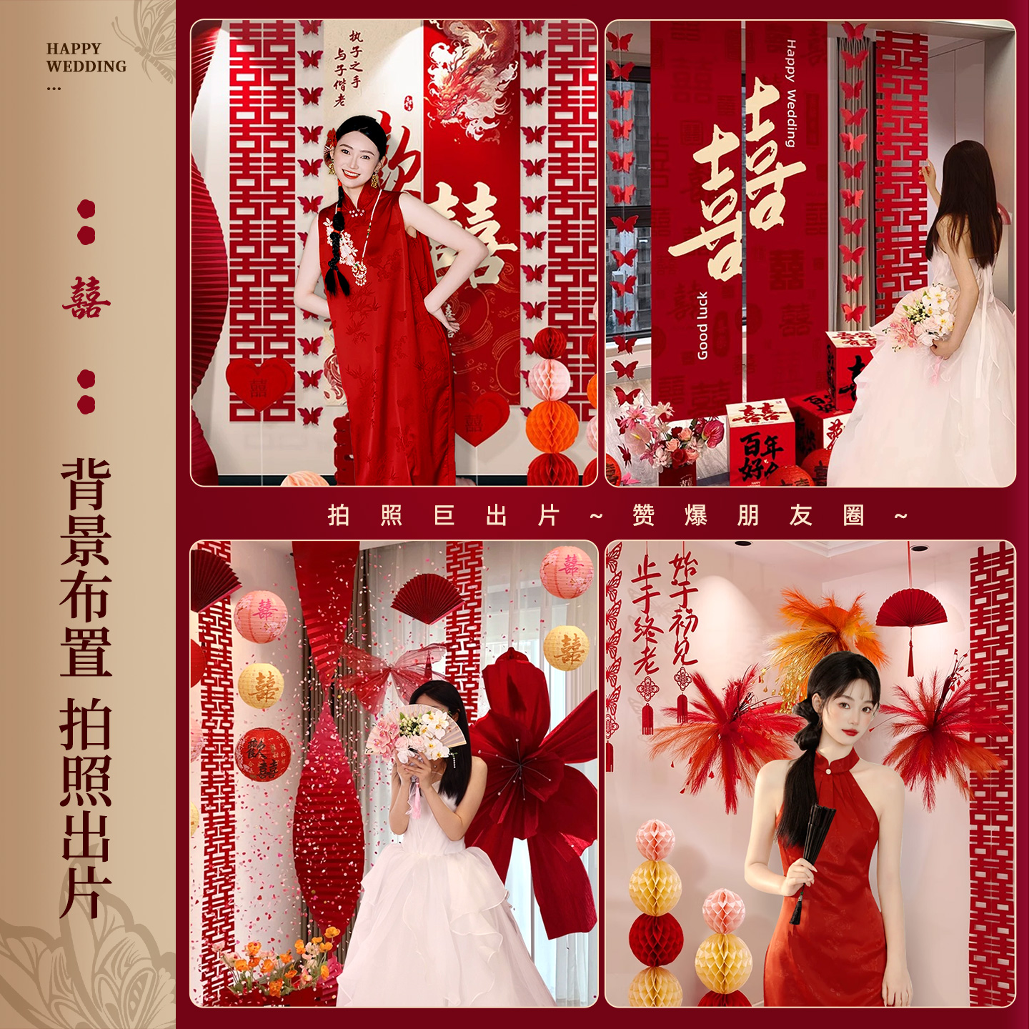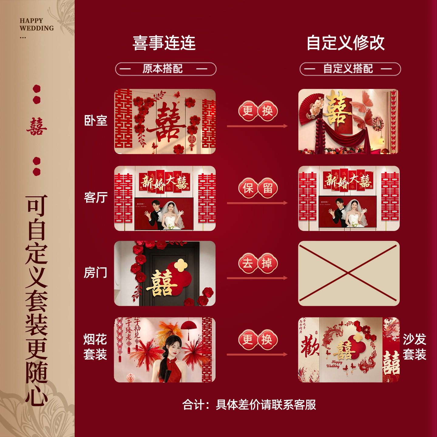 婚房布置套装 饰男方女方卧室客厅喜字拉花婚庆用品大全 结婚全屋装
