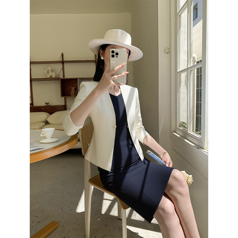 工作服白色西装 职业装 气质女神范两件套正装 春秋季 连衣裙子 女套装