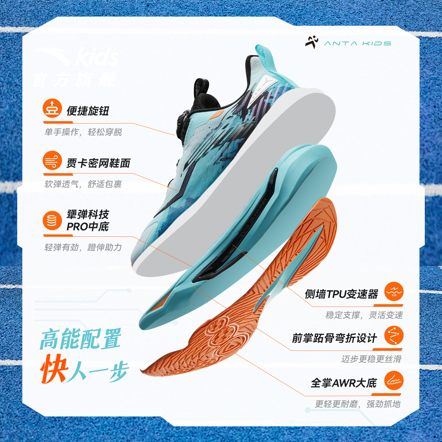 旋钮运动鞋 安踏童鞋 学生体育跑步鞋 2025秋新款 速胜儿童男大童跑鞋