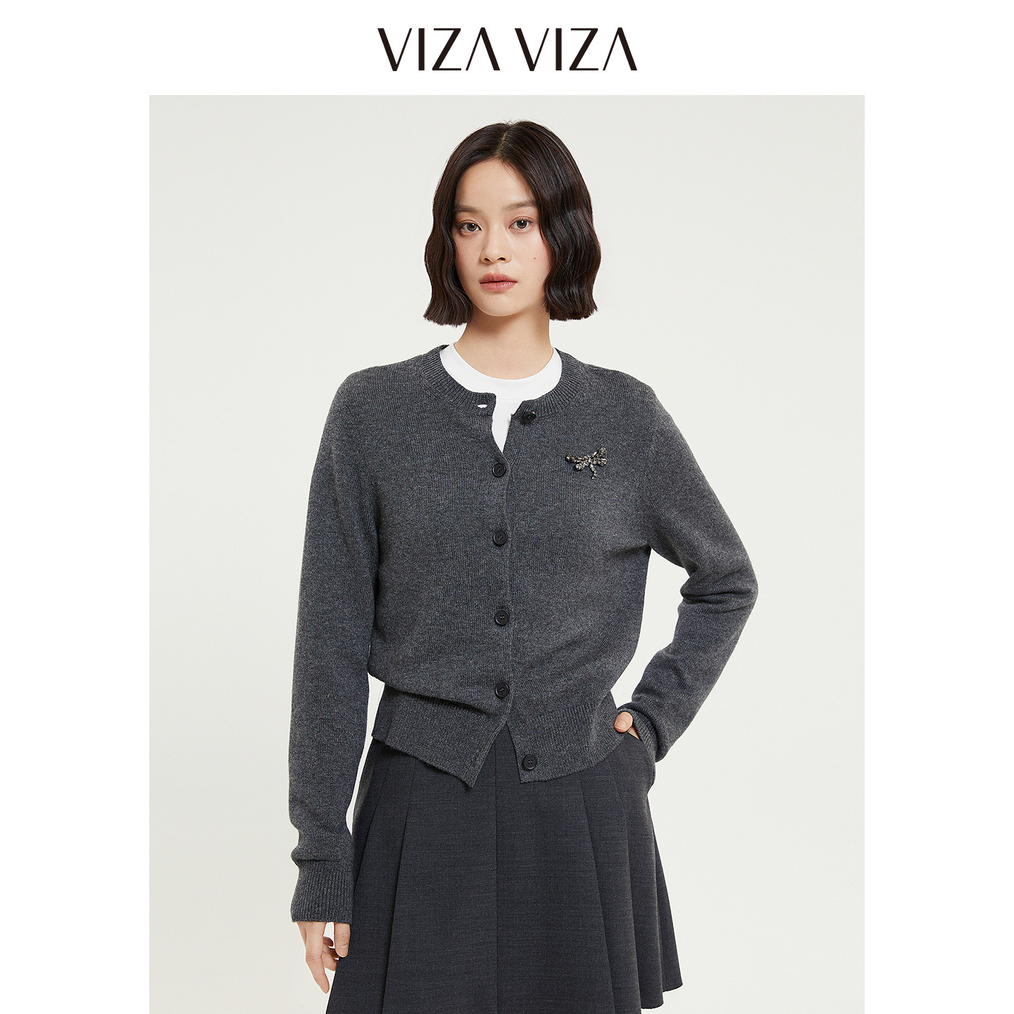 气质圆领毛针织衫 VIZA MIU系学院风羊绒开衫 新款 女 2025冬季