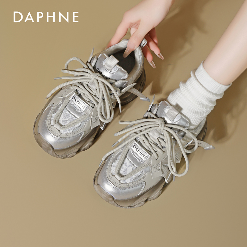 2025秋季 骆驼女鞋 新款 休闲透气老爹鞋 女 厚底增高银色运动鞋 银熠