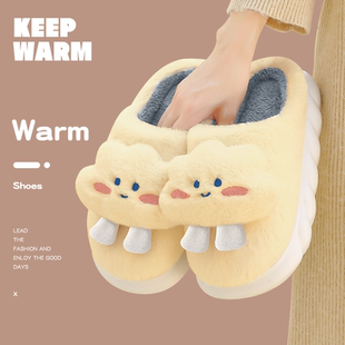 室内家居可爱毛绒防滑保暖月子拖鞋 秋冬季 女士2025新款 云朵棉拖鞋