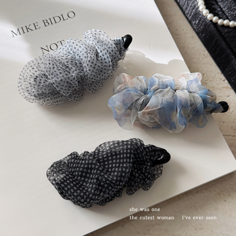 网纱波点泡泡香蕉夹女慵懒风高马尾竖夹发夹后脑勺发卡扭扭夹头饰