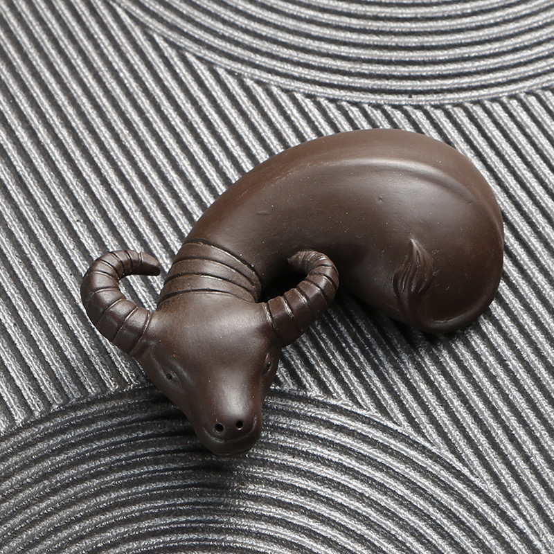 紫砂小水牛茶宠摆件茶艺功夫茶具茶玩扭牛转乾坤茶盘配件可养手工