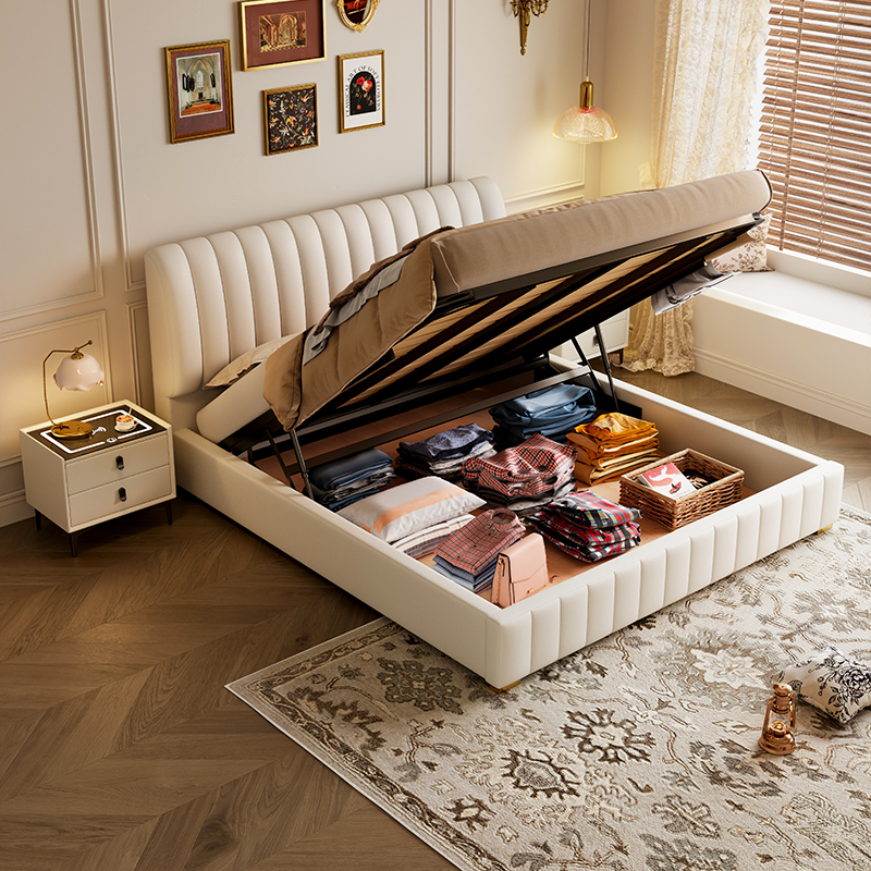 政府补贴蓝色理想主卧真皮钢琴床现代轻奢婚床高端大气1.8m双人床