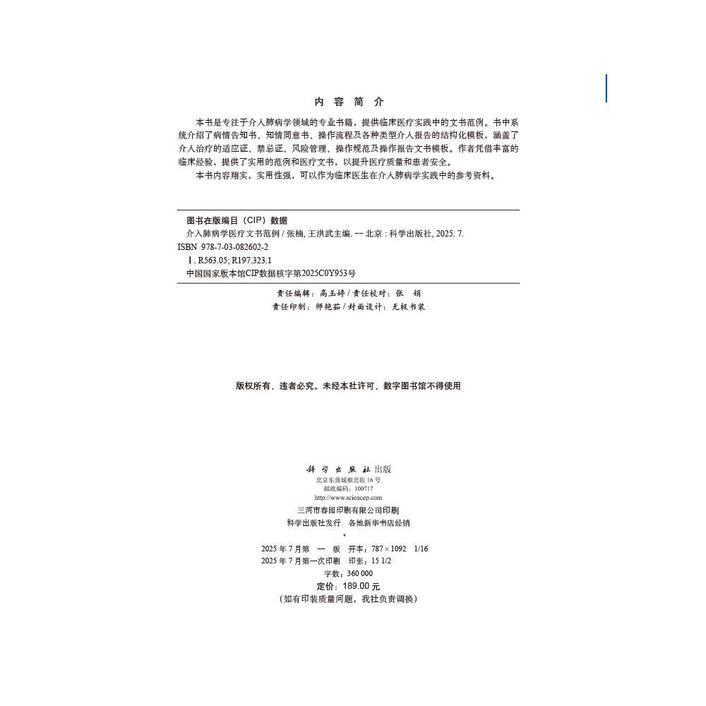 介入肺病学医疗文书规范与范例 书籍 介入肺病学医疗文书范例 正版 社 科学出版 主编 王洪武 张楠 现货正版