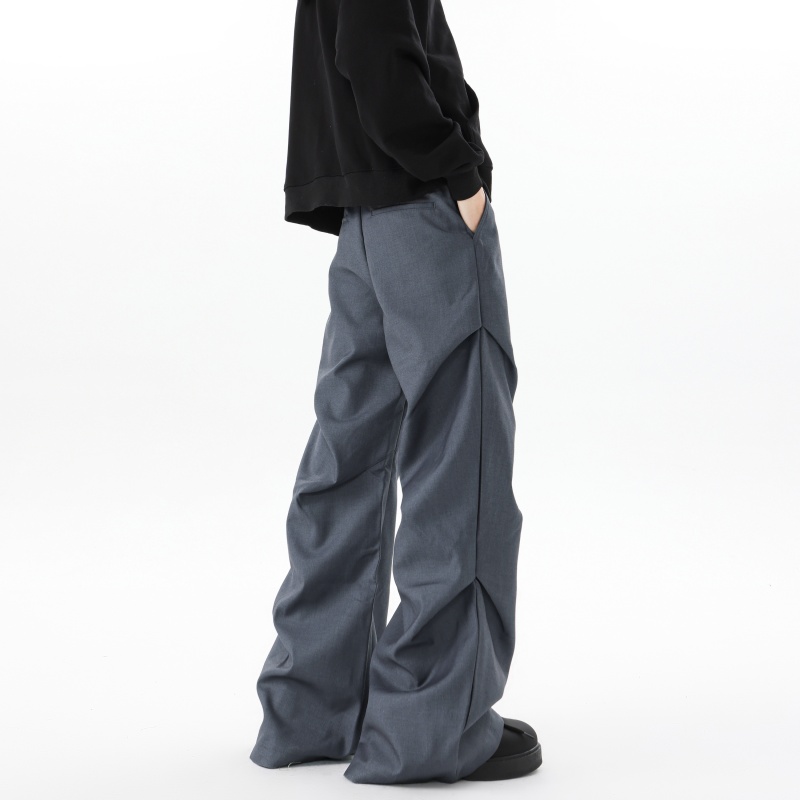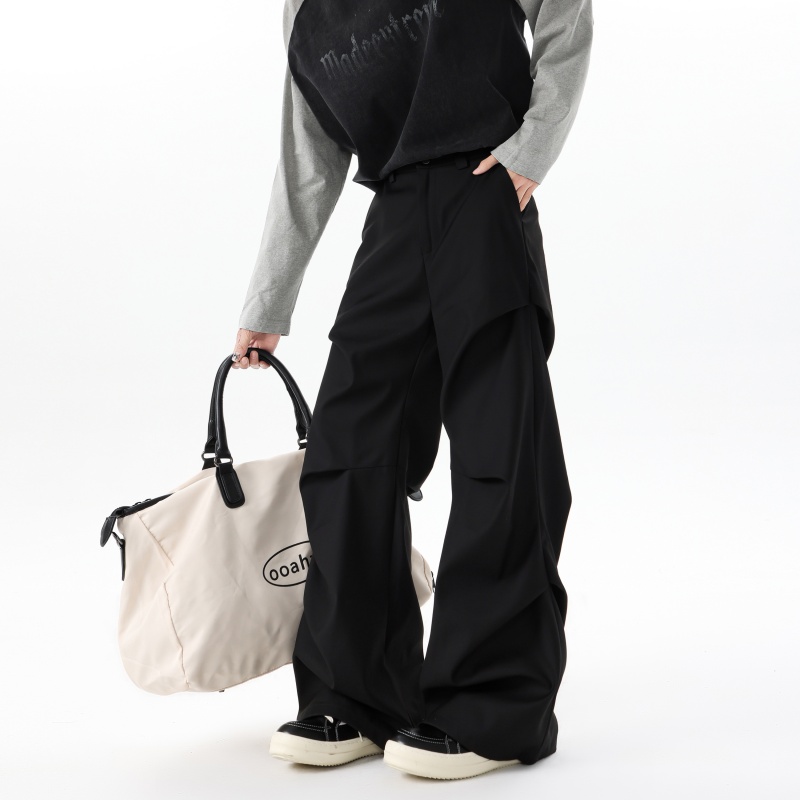 女春秋新款 休闲直筒慵懒松弛感裤 高腰垂感窄版 裤 子 西装 黑色阔腿裤