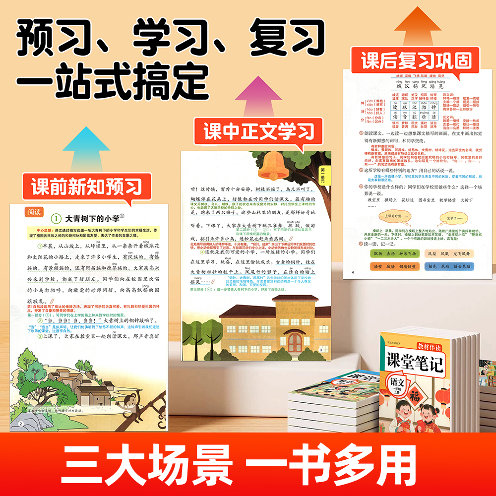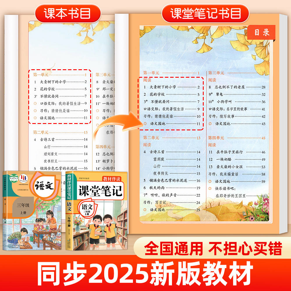 黄冈学霸课堂笔记全套 同步课本预习三上辅导资料书小学教材同步解读正版 2025年新版 三年级上册课堂笔记语文数学英语人教版