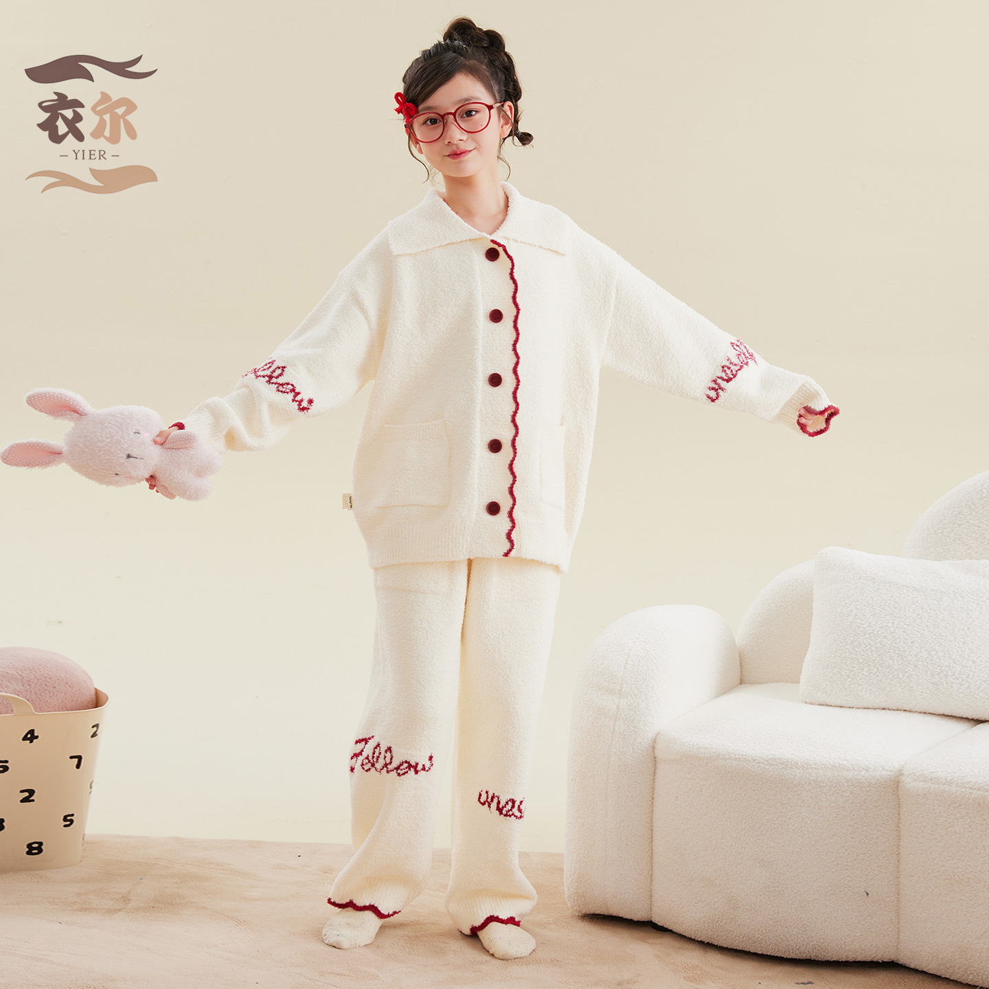 中大童女孩秋季 儿童家居服套装 加厚 2025新款 女童半边绒睡衣秋冬款
