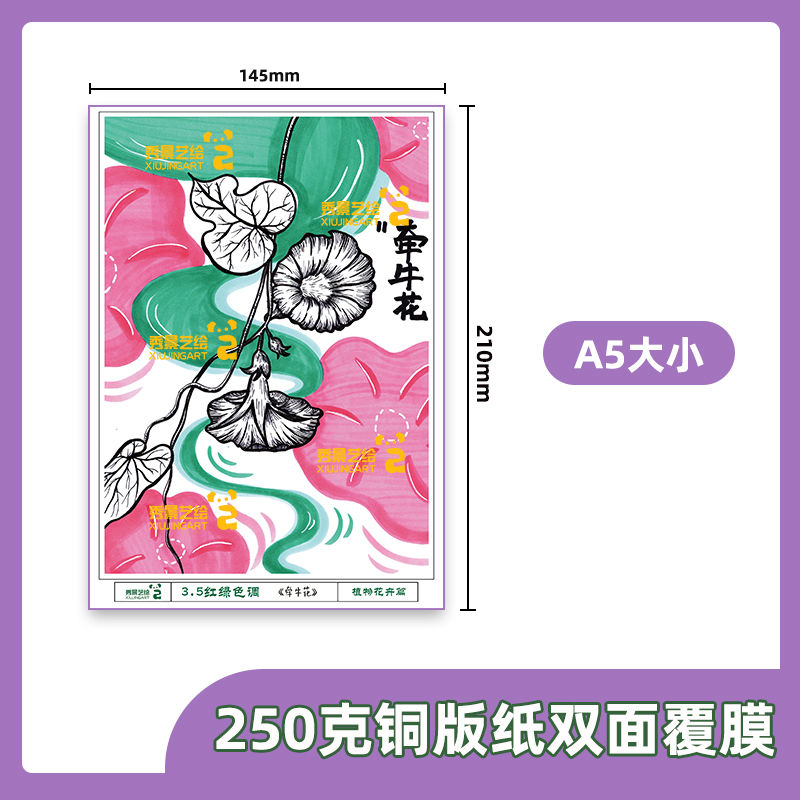 秀景艺绘花点心思线描写生临摹卡植物花卉篇美术创意素描考级画室临摹卡素材