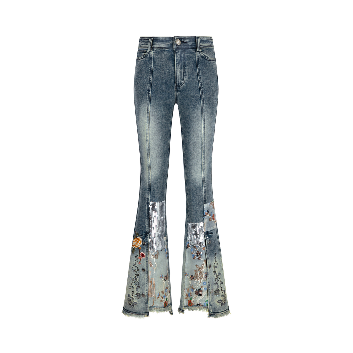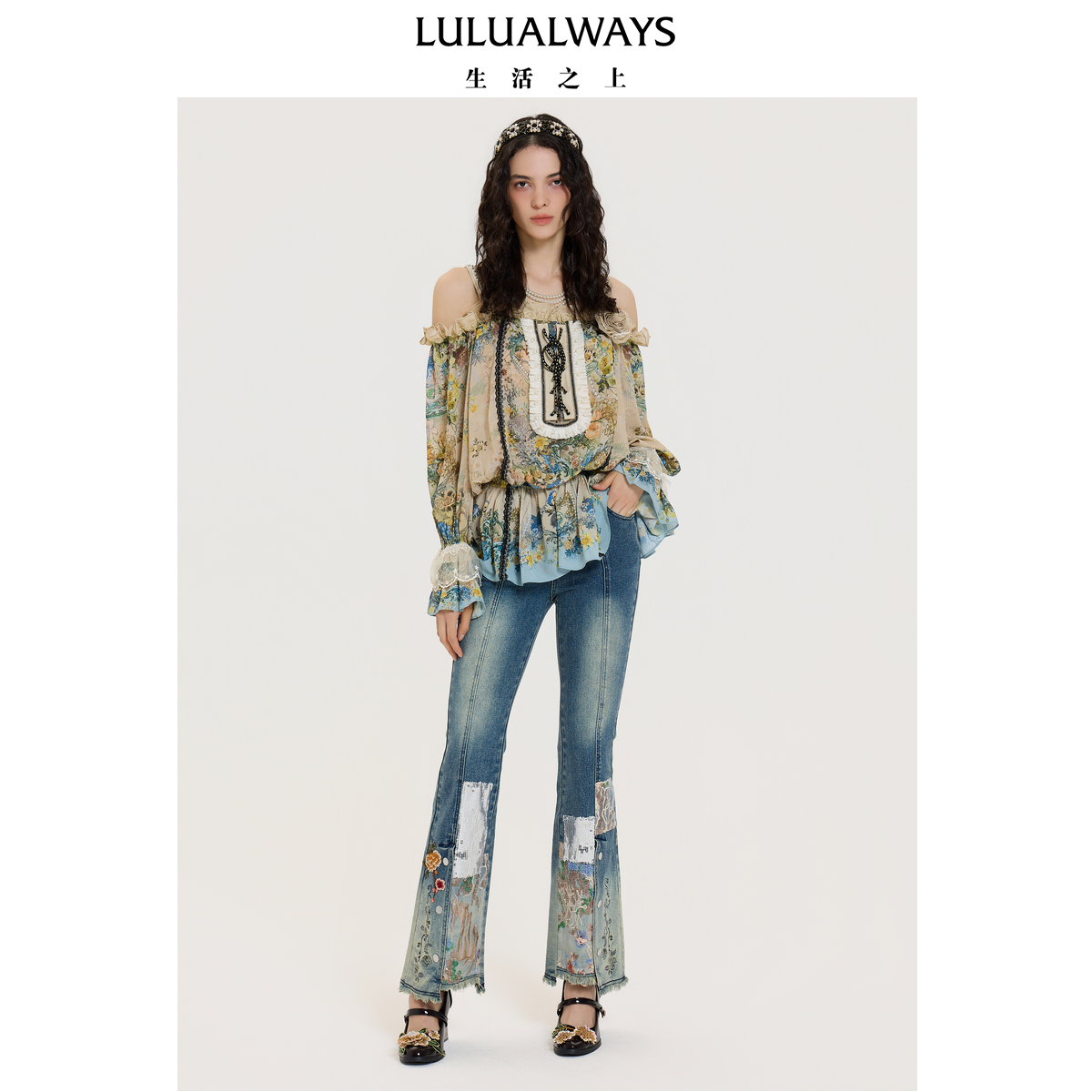 百搭弹力显瘦复古辣妹拖地喇叭长裤 KRO高腰牛仔微喇裤 女2025新款