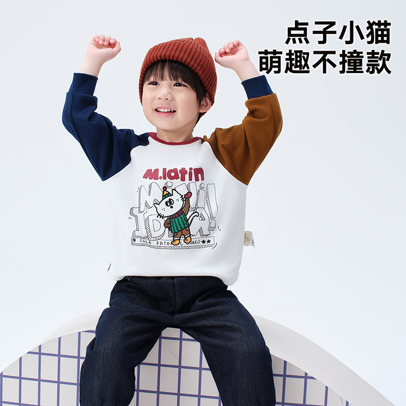 柔软亲肤 马拉丁 冬男女小童趣味印花撞色百搭T恤 双11预售