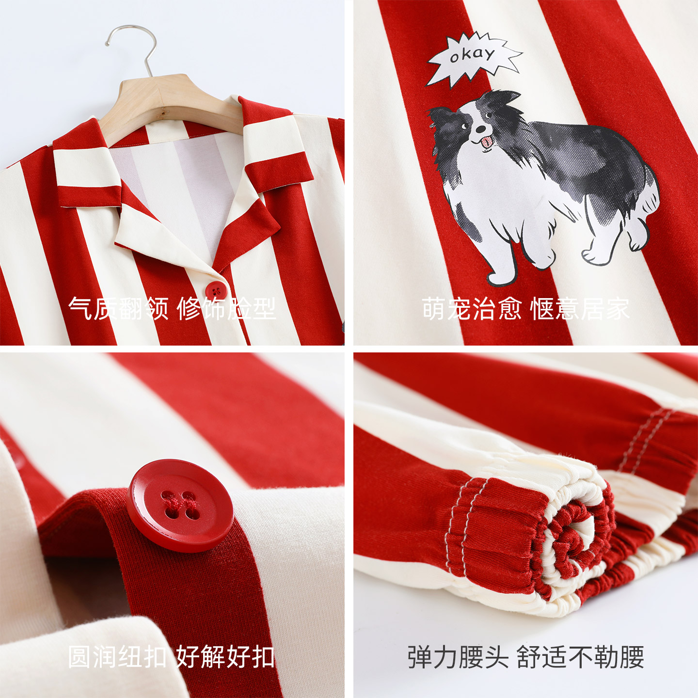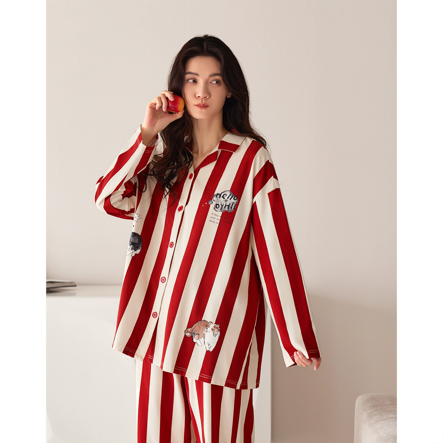 纯棉长袖 休闲条纹可外穿秋冬家居服套装 秋季 时尚 大码 睡衣女春秋款