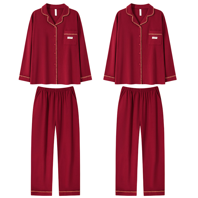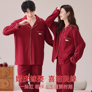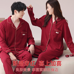 红色睡衣结婚新婚情侣套装 纯棉全棉新人高级感一男一女家居服女方