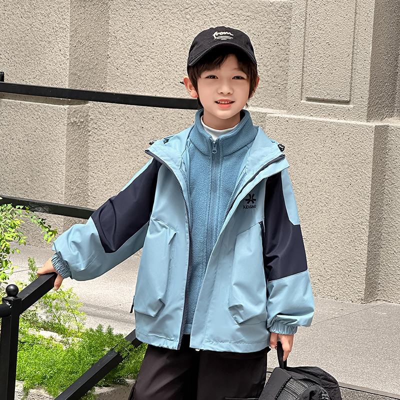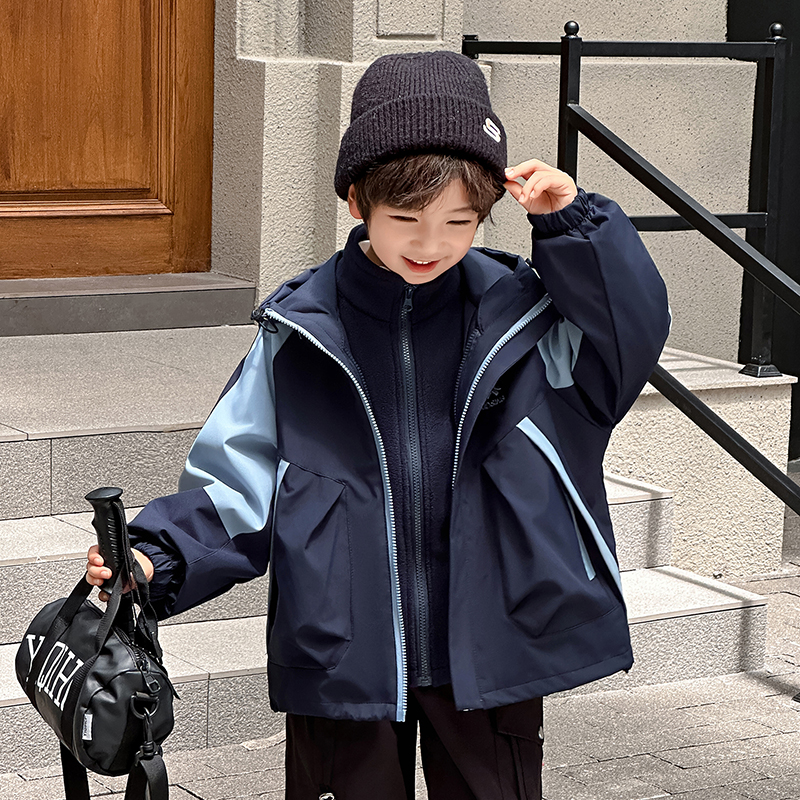 上衣中大童男孩秋冬儿童冲锋衣三合一 秋装 男童外套春秋款 2025新款