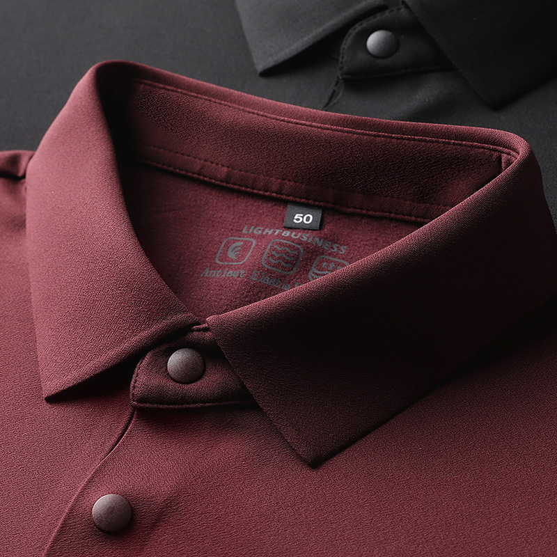 新款 体恤胖子宽松免烫抗皱POLO衫 大码 无感空气格翻领长袖 男士 秋季