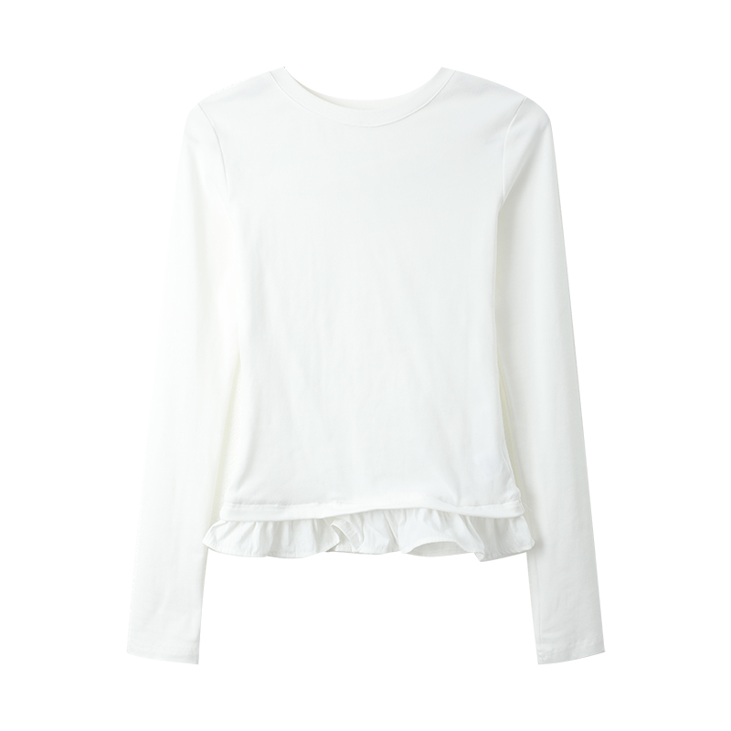 长袖 2025年秋季 甜美纯色显瘦圆领套头木耳边打底衫 韩版 T恤 新款