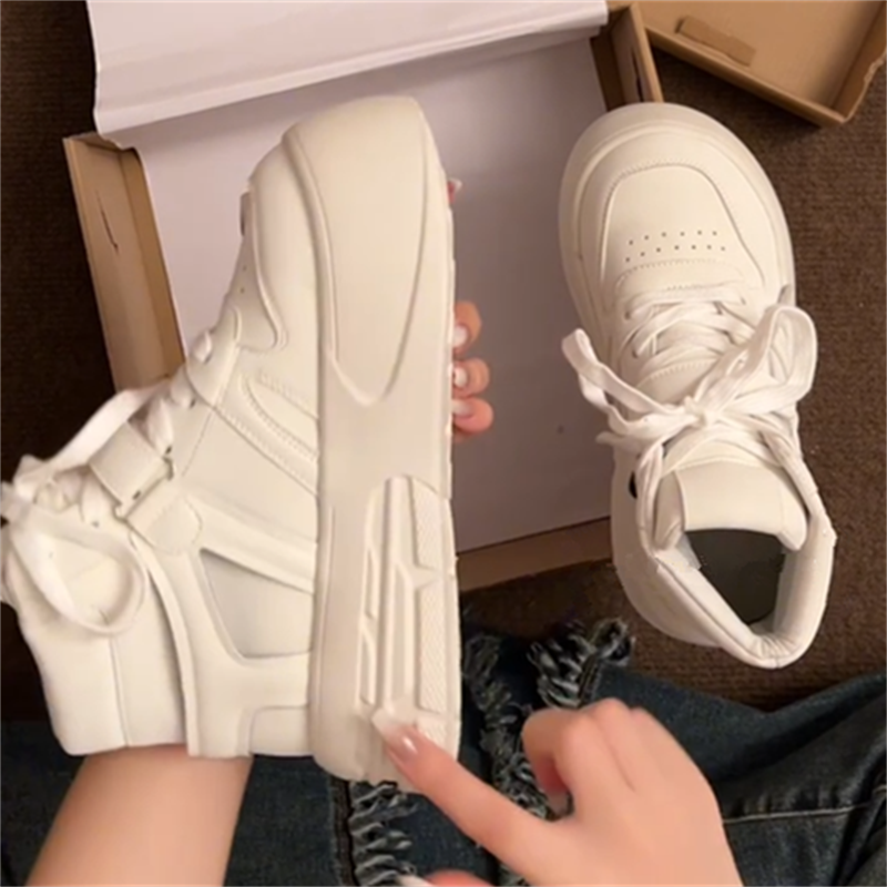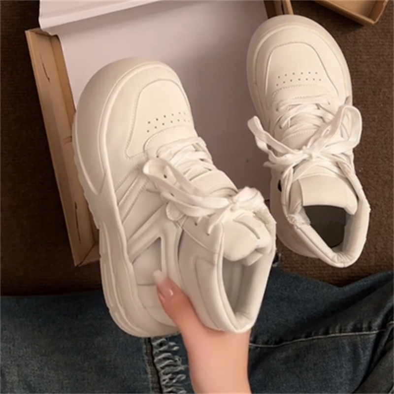 女小白鞋 高帮板鞋 ins增高 全皮小众丑萌大头厚底面包鞋 时髦超甜味