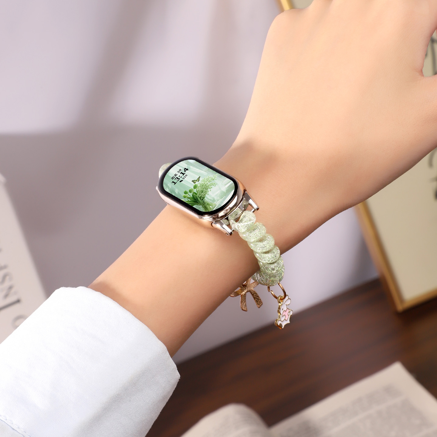 适用于小米手环10表带新款 智能8NFC可爱小兔透明手链女生运动替换腕带创意配件 蝴蝶结弹力绳发圈9陶瓷特别版