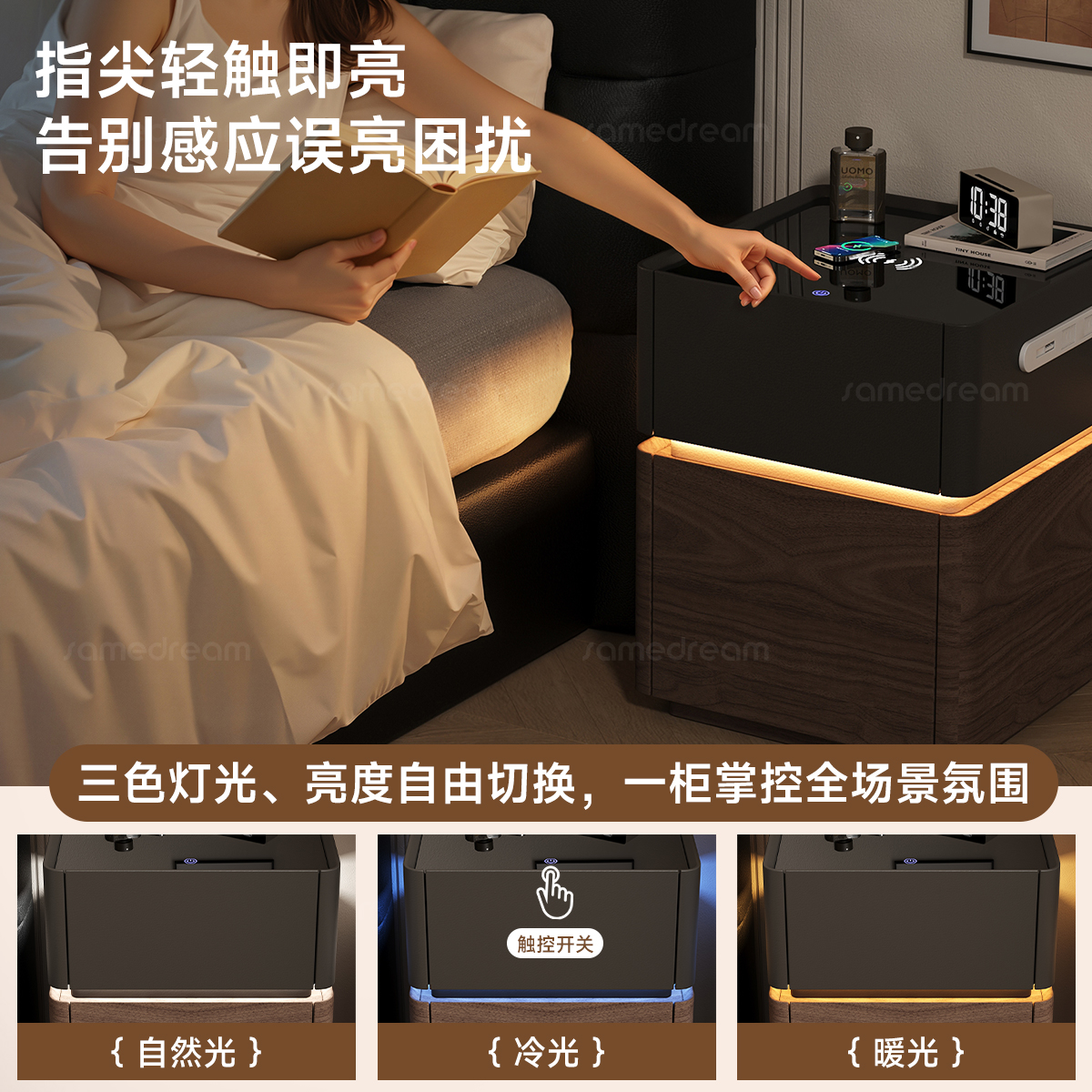全友家居意式 极简床头柜小型轻奢高级感胡桃木色卧室家用2025新款