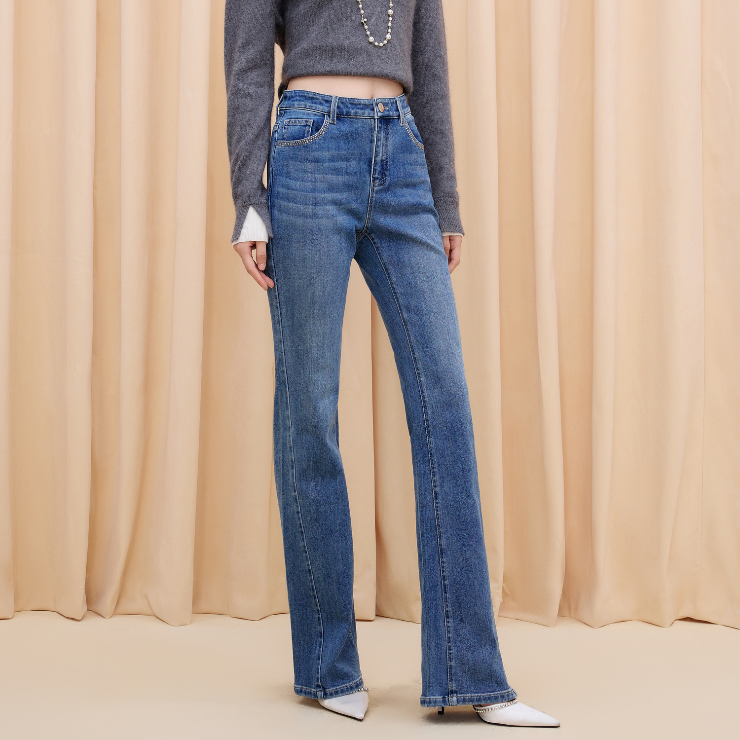 女2025气质百搭喇叭裤 乔栈秋冬新款 加绒高腰显瘦不贴腿微喇牛仔裤