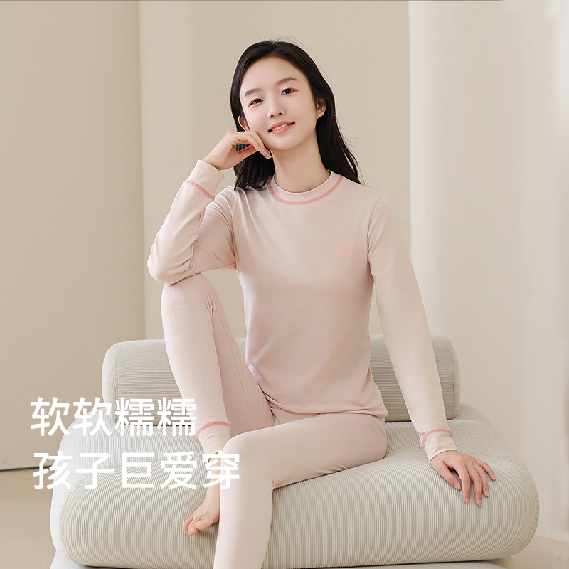 初中生少女秋衣秋裤 纯棉a类女大童儿童保暖内衣青少年高中生 套装