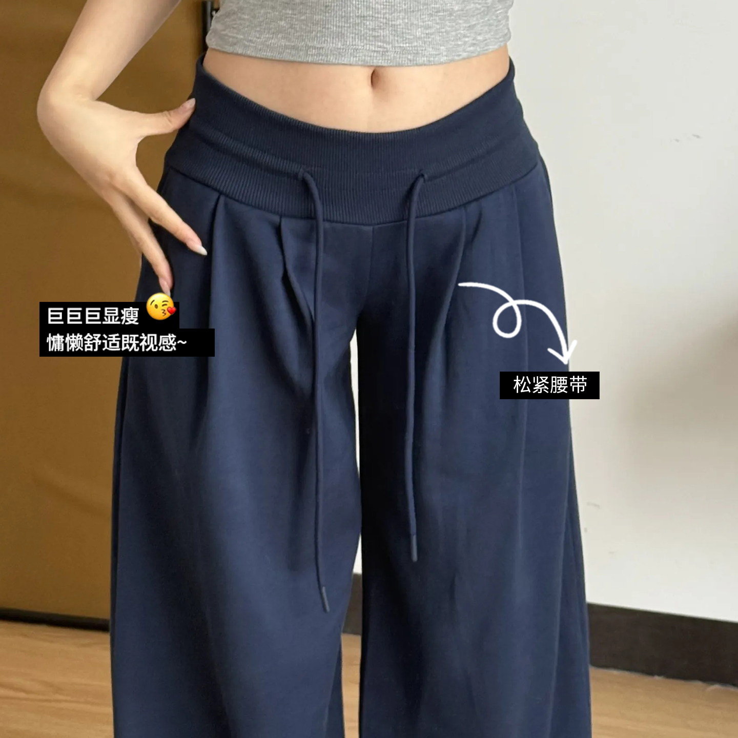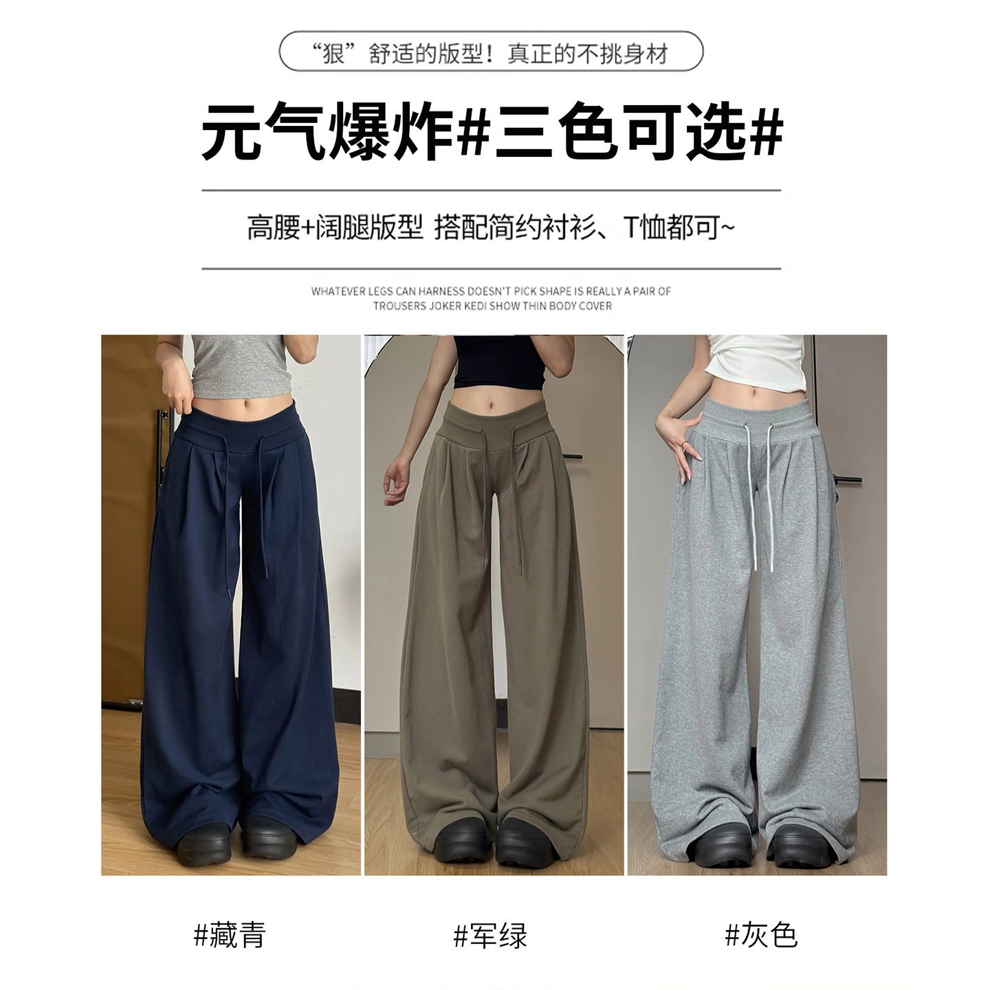 休闲垂感宽松直筒慵懒风卫裤 女春秋2025新款 运动阔腿裤 军绿色美式