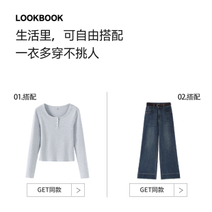 垂感百搭休闲阔腿裤 新款 女秋季 班尼路S&K系列复古毛边牛仔裤