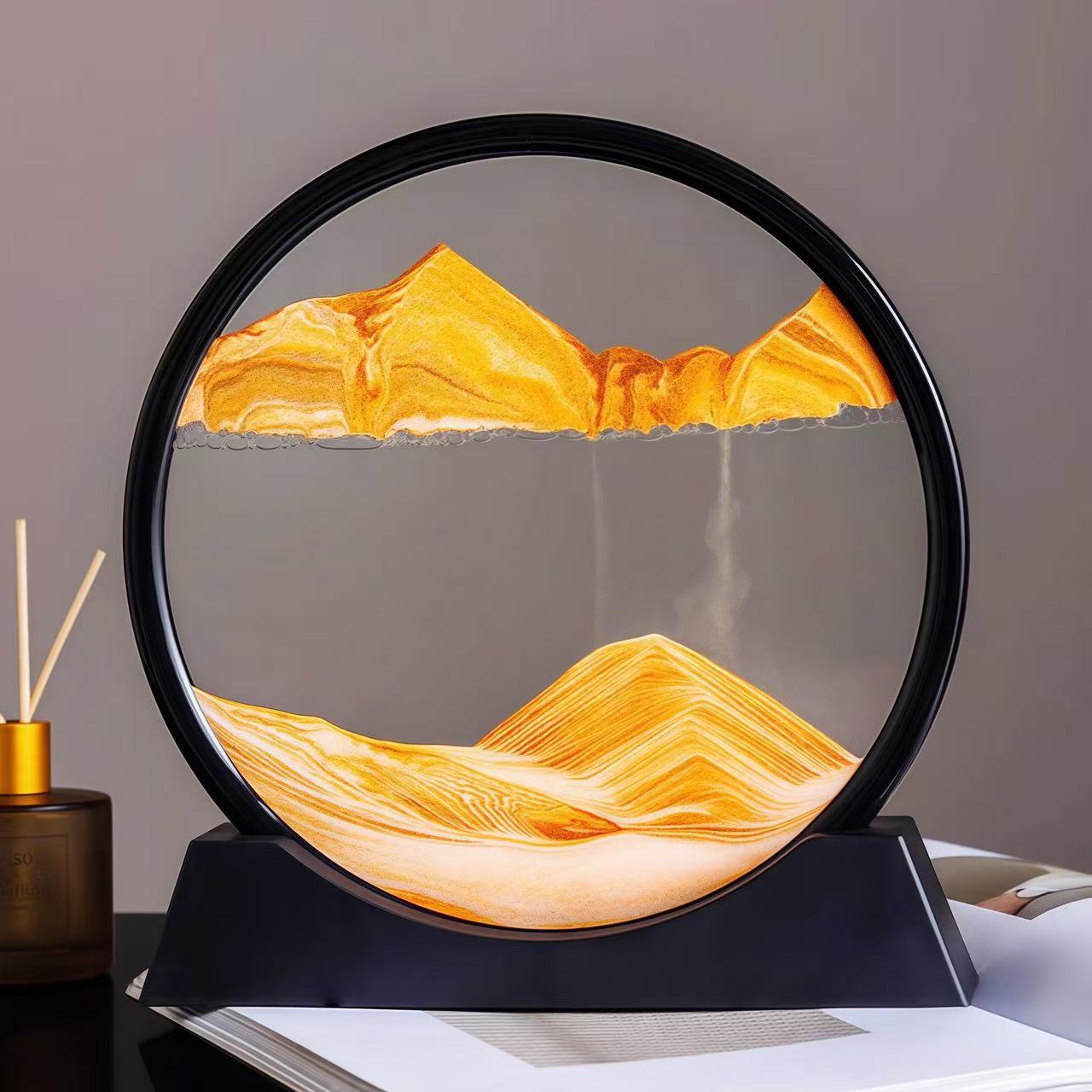 流沙画圆形风景玻璃摆件摆放创意时尚 饰大号 艺术液体沙漏简约装