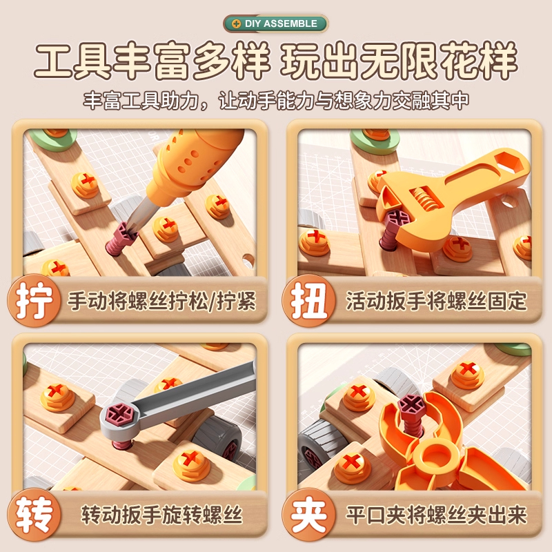 日本mujie拧螺丝钉玩具儿童修理工具箱男孩益智动手电钻组装