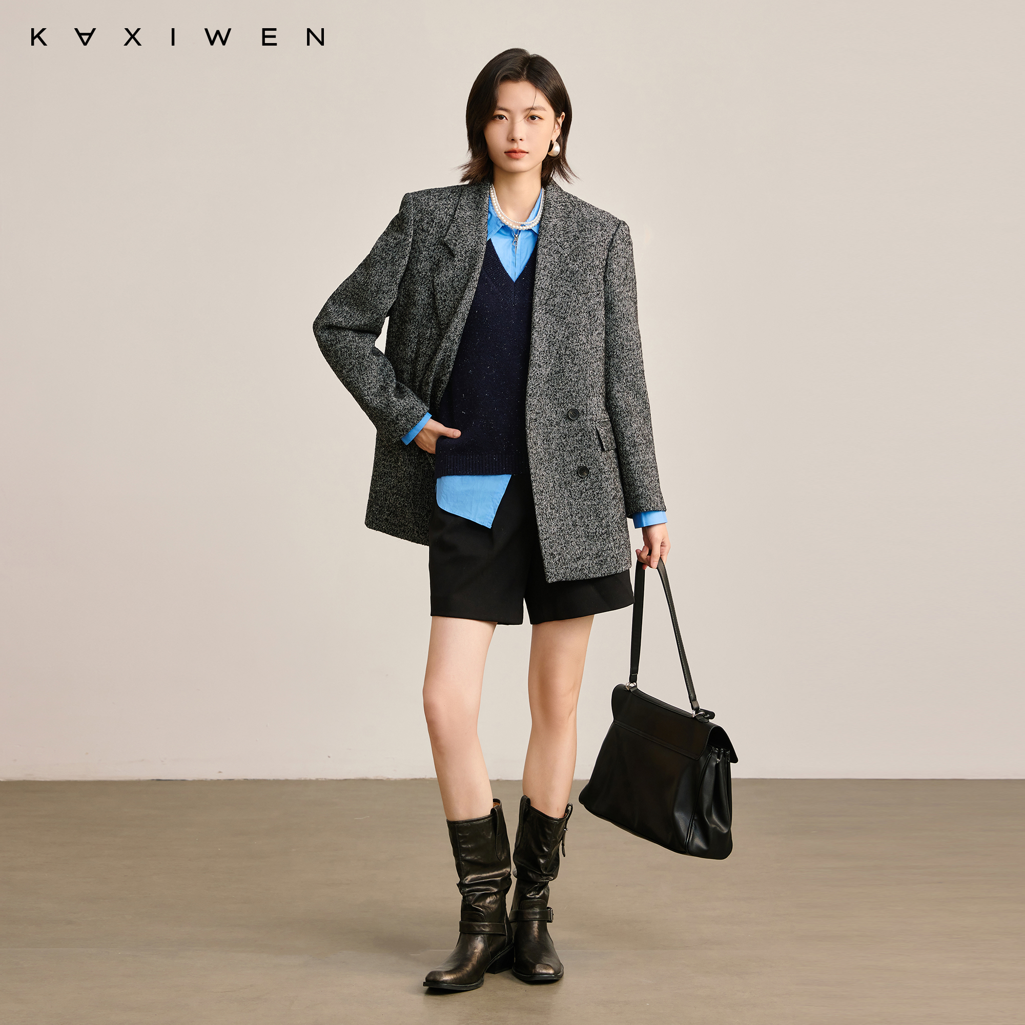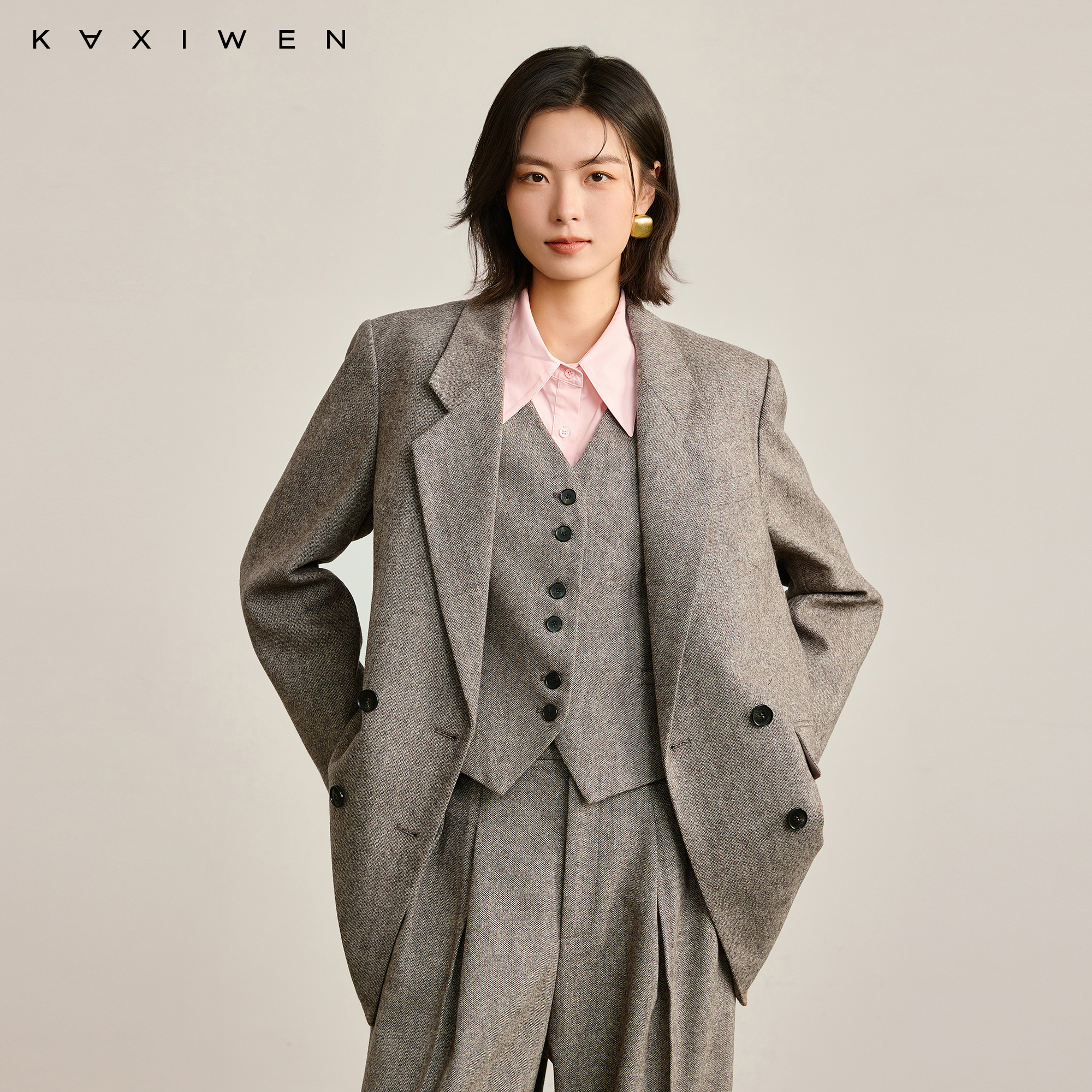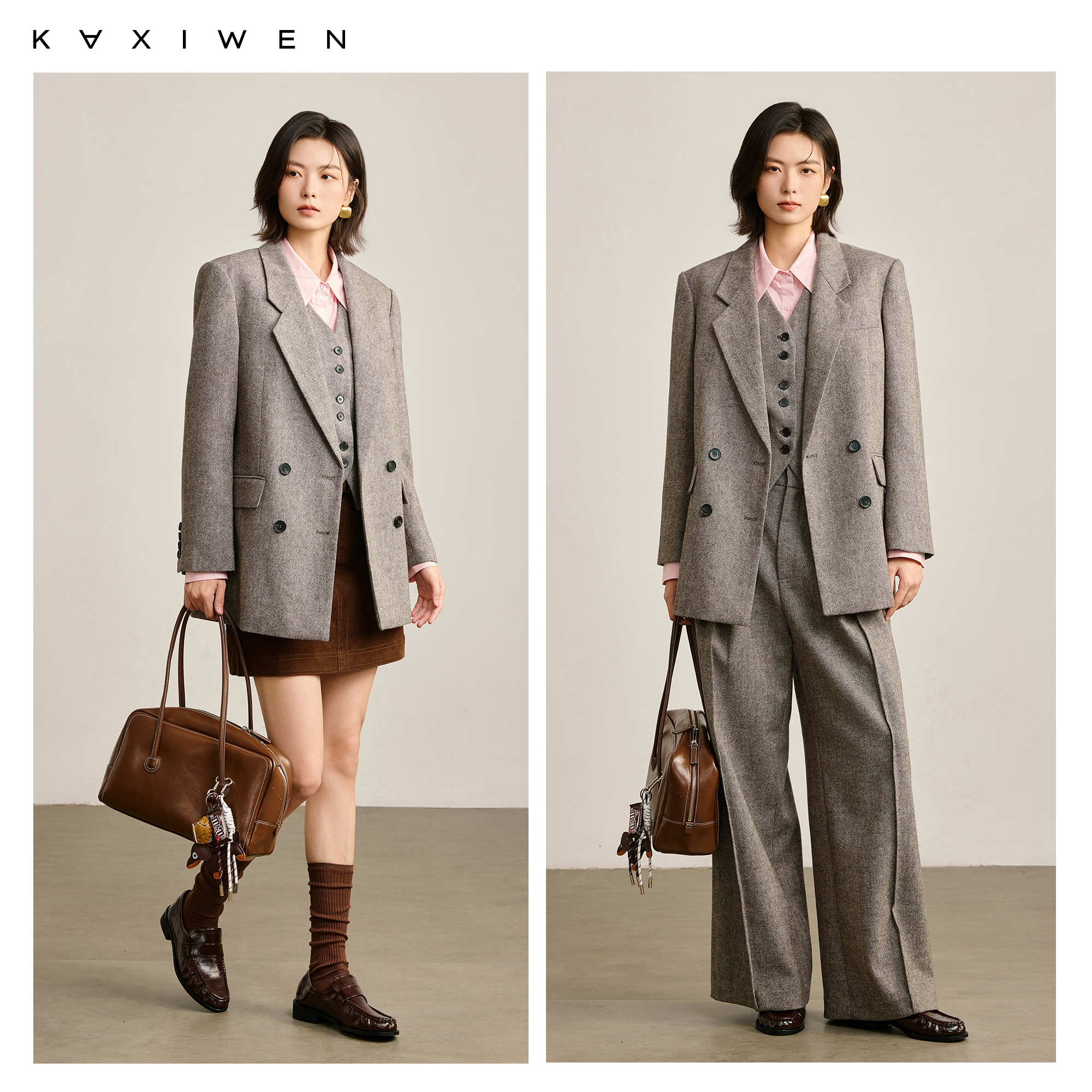 马甲气质正装 西裤 朗姿纯羊毛灰色条纹西服 2025冬新款 免定金
