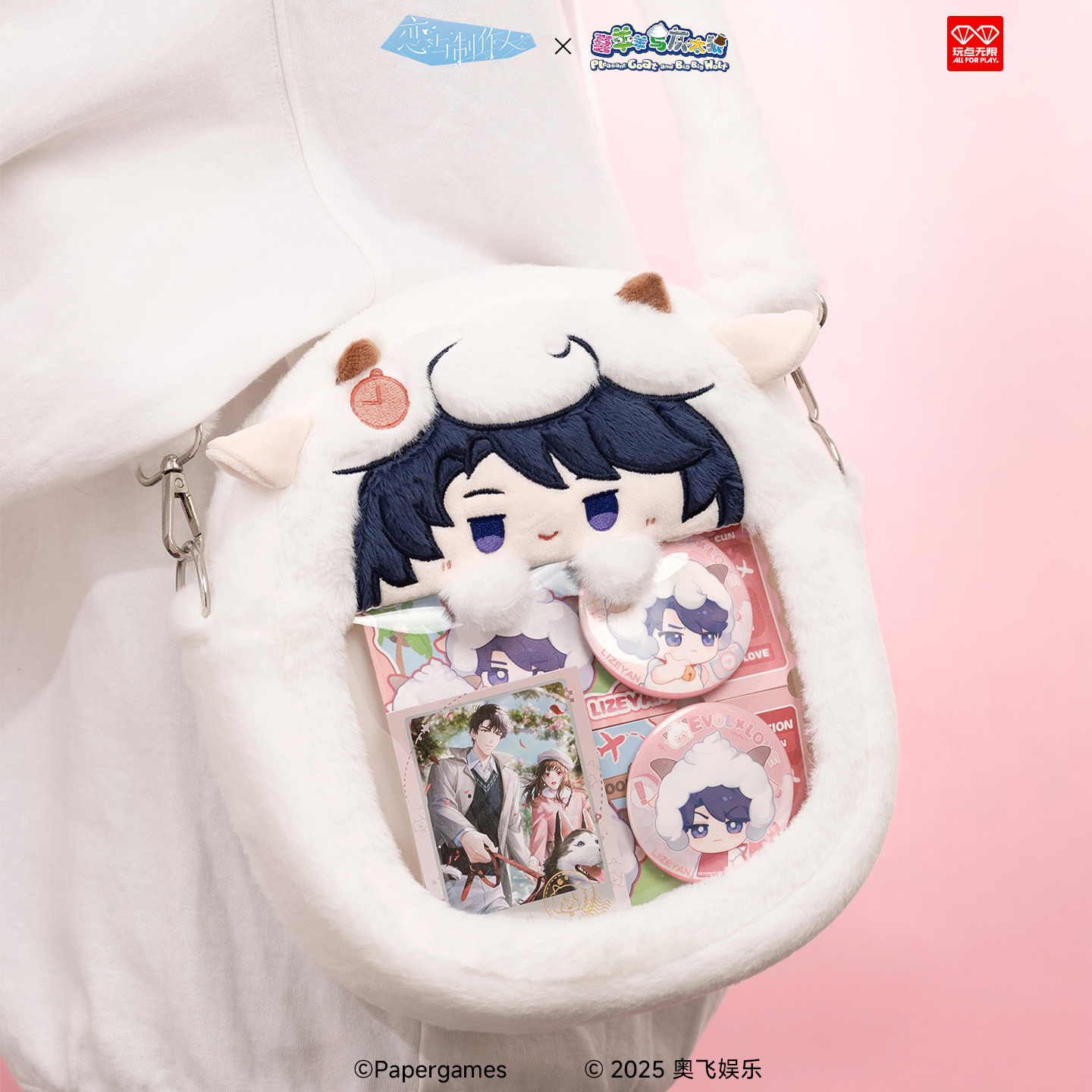 玩点无限恋与制作人×喜羊羊与灰太狼羊村奇旅毛绒斜挎包正版 周边