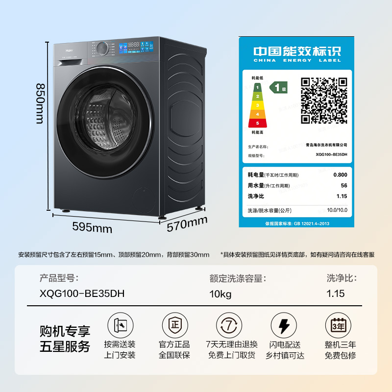 海尔滚筒洗衣机家用全自动10公斤直驱变频官方旗舰77E 云溪4.0
