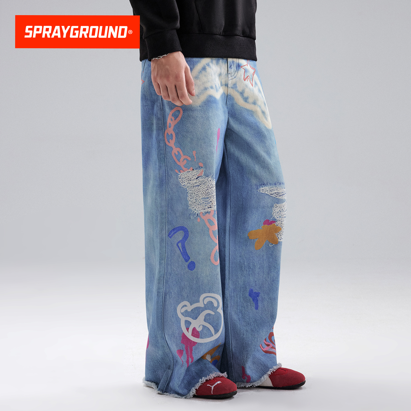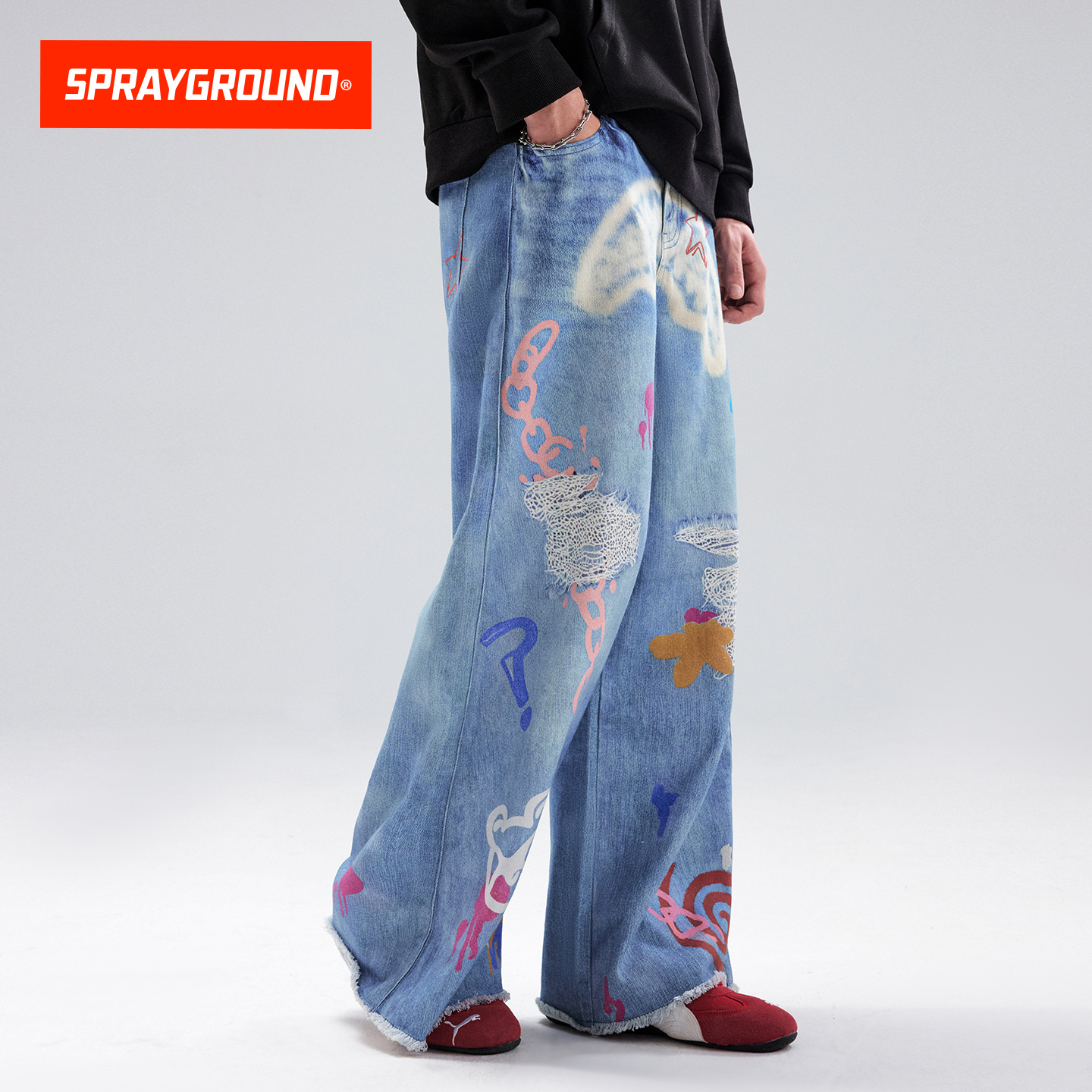 vibe直筒痞帅长裤 SprayGround鲨鱼嘴25秋季 男美式 涂鸦牛仔裤 新款