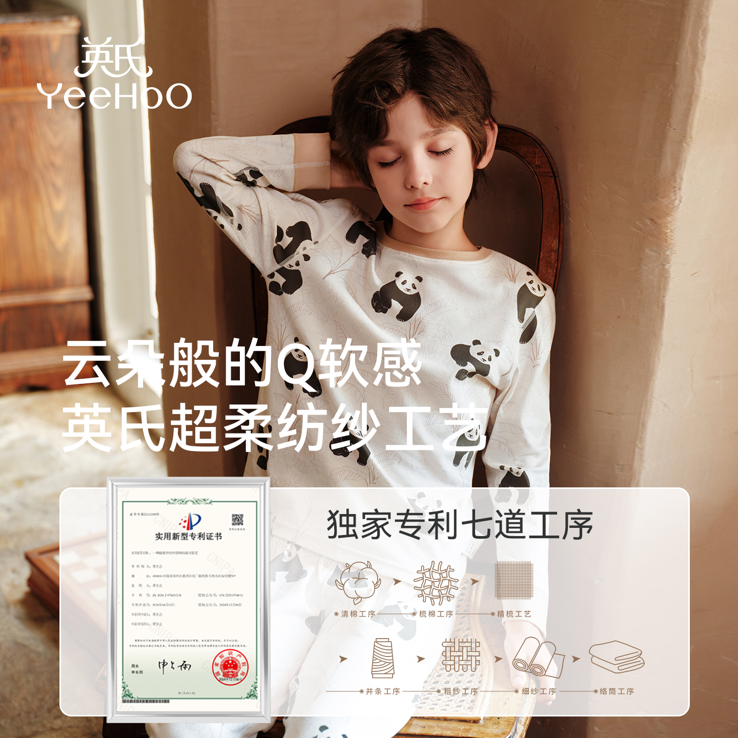 男孩a类家居服2025新款 英氏儿童睡衣纯棉男童春秋熊猫秋衣裤 套装