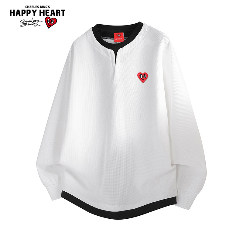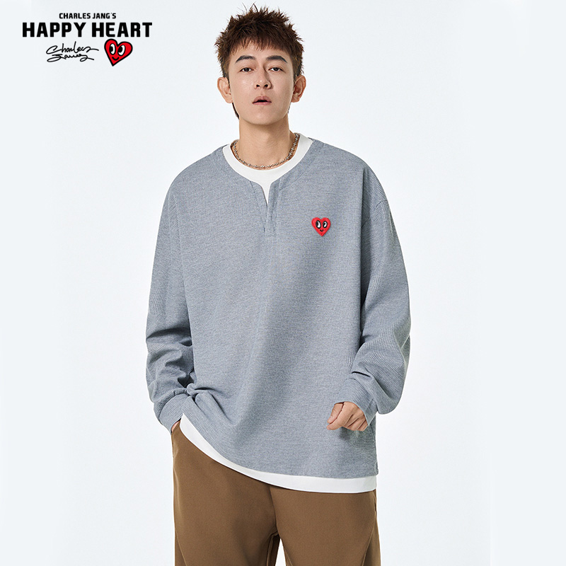 宽松百搭撞色拼接情侣上衣 假两件V领卫衣男春秋季 查尔斯桃心 美式