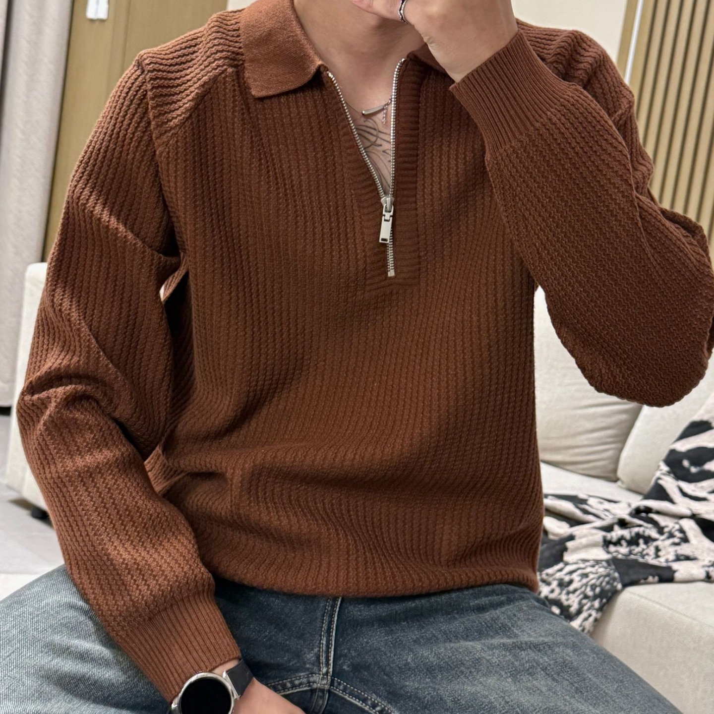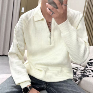 女碎花上衣 穿搭新款 阔色白色翻领polo领毛衣针织衫 2025秋冬季