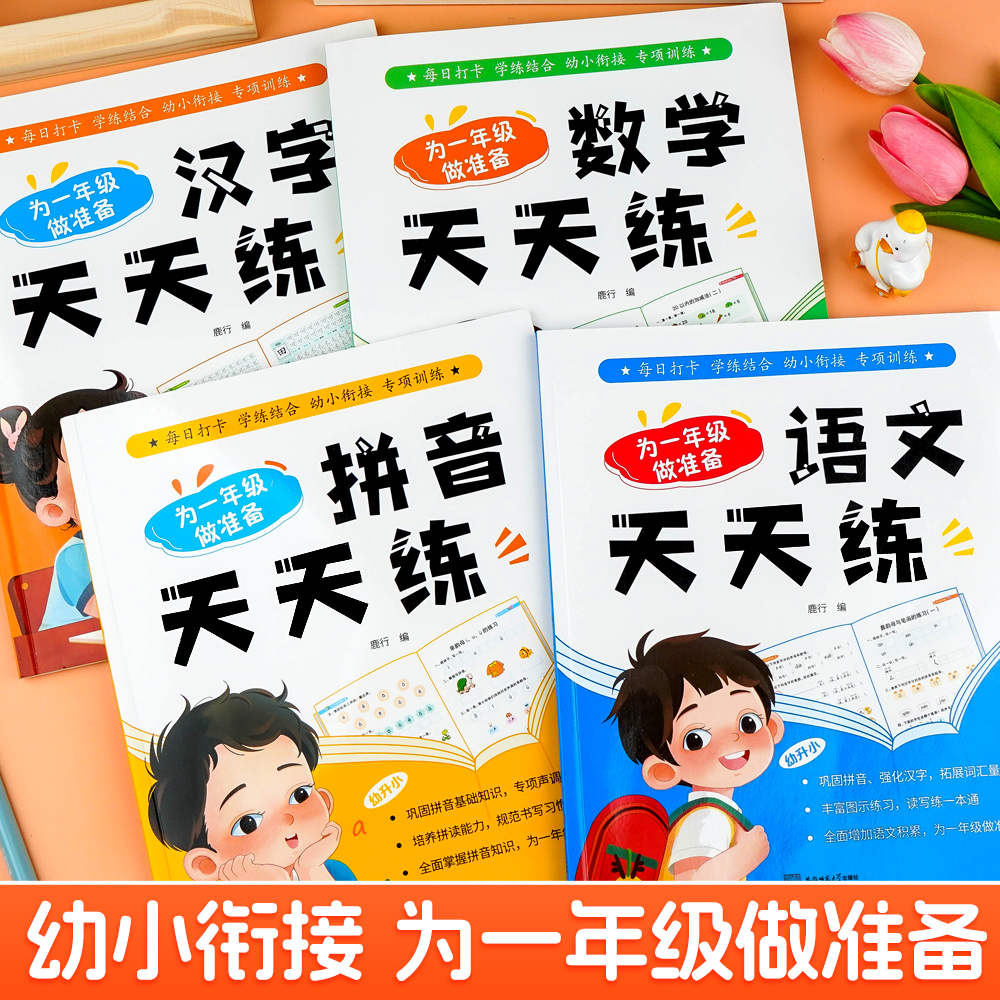 幼小衔接教材全套一日一练幼儿园学前班大班练习册全套4本幼升小每日一练语文拼音数学识字预备一年级入学准备配套人教版 暑假作业