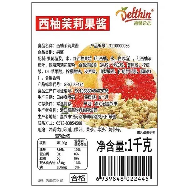 新日期德馨珍选西柚茉莉果酱1kg烘焙冰沙调味甜品面包酱奶茶店专