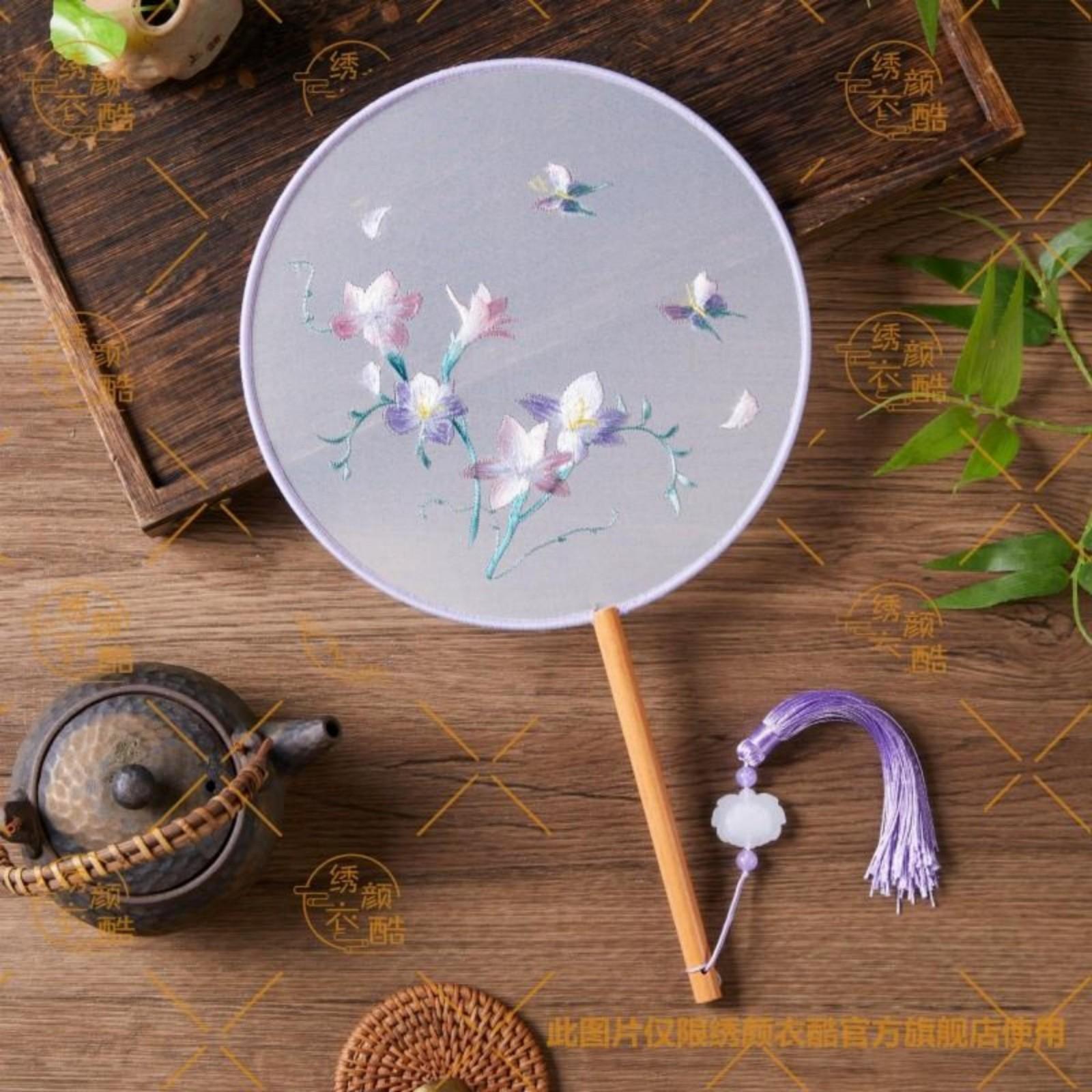 团扇古风扇子儿童汉服夏天女童舞蹈扇旗袍刺绣古装 小圆扇双面绣花