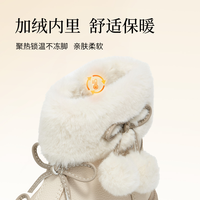 百丽复古时装 加绒显瘦厚底粗高跟短靴子E5S1DDD5预 超软羊皮靴新款