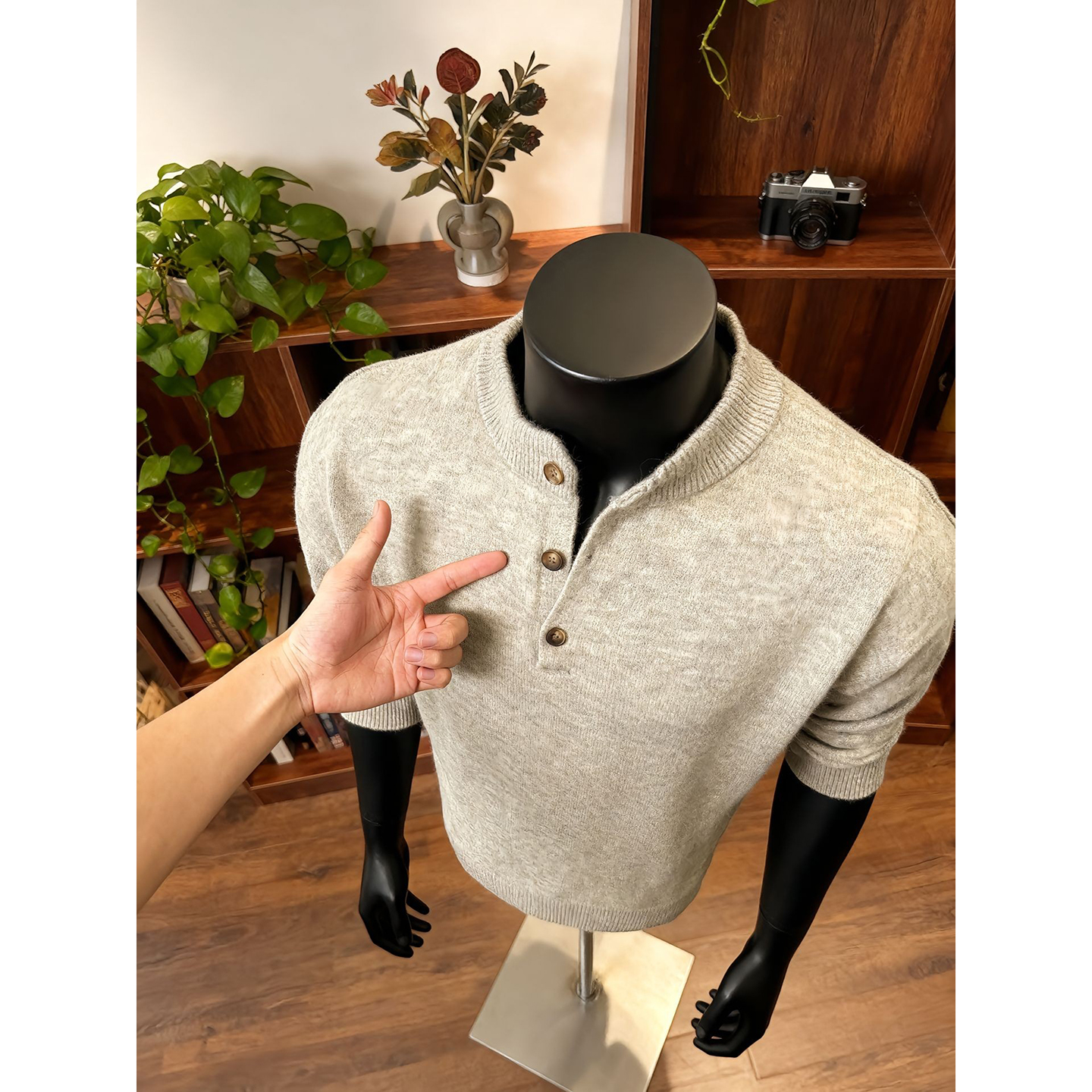 cleanfit花灰色美式 亨利领毛衣男秋冬慵懒高级感针织内搭打底线衫