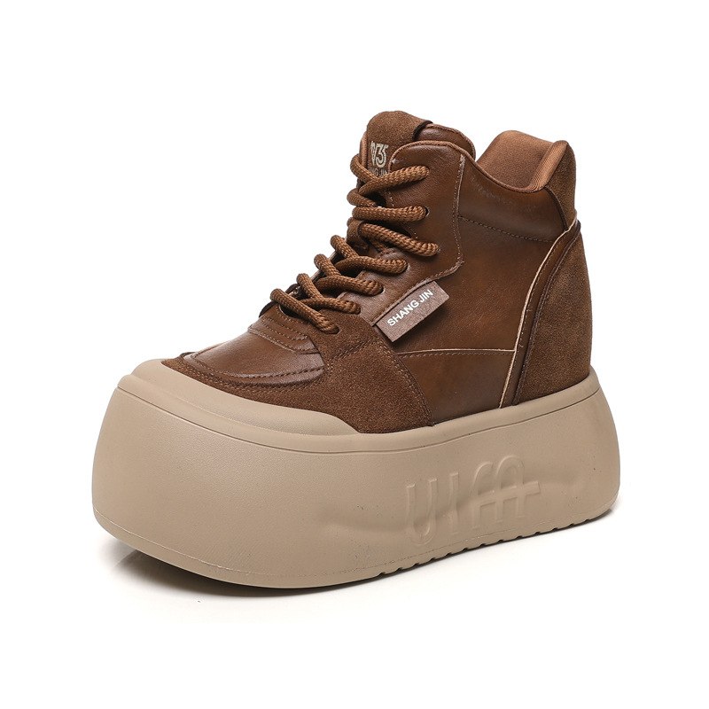 靴子 真皮防水厚底增高工装 森马马丁靴男秋季 高帮百搭休闲白色板鞋