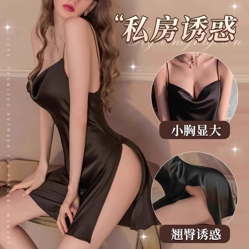 性感睡衣女2025年春夏季 纯欲风冰丝绸带胸垫蕾丝吊带睡裙睡袍 新款