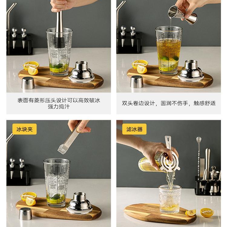 德国304不锈钢调酒器玻璃雪克杯手摇壶鸡尾酒吧工具套装 入门摇杯