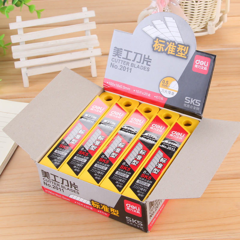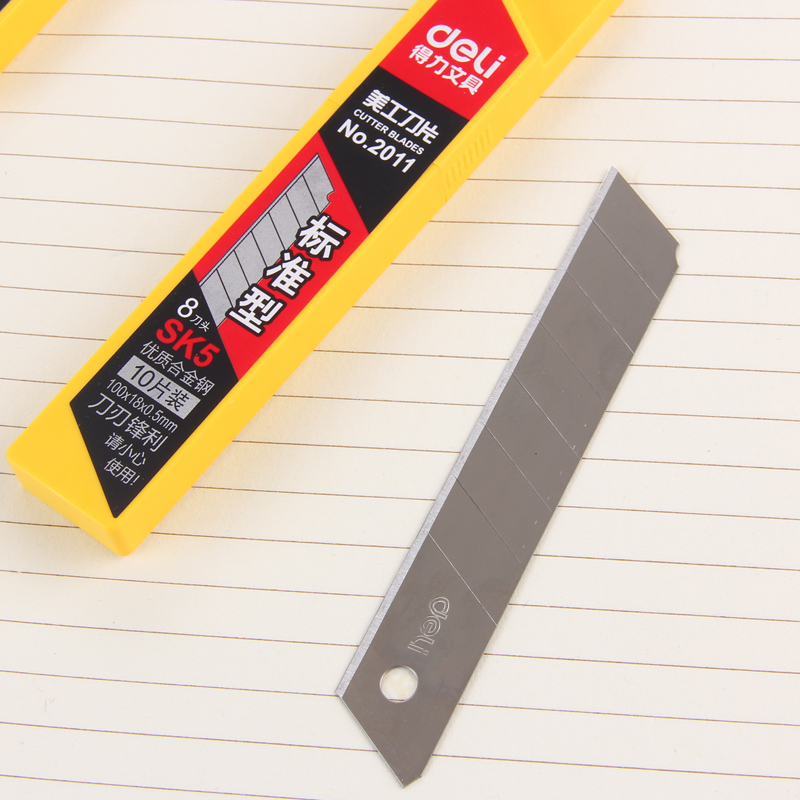 得力2011大号美工刀片裁纸刀片雕刻贴膜专用墙纸壁纸大码 梯形单面刀片标准型加厚SK5工业用多功能10片盒装