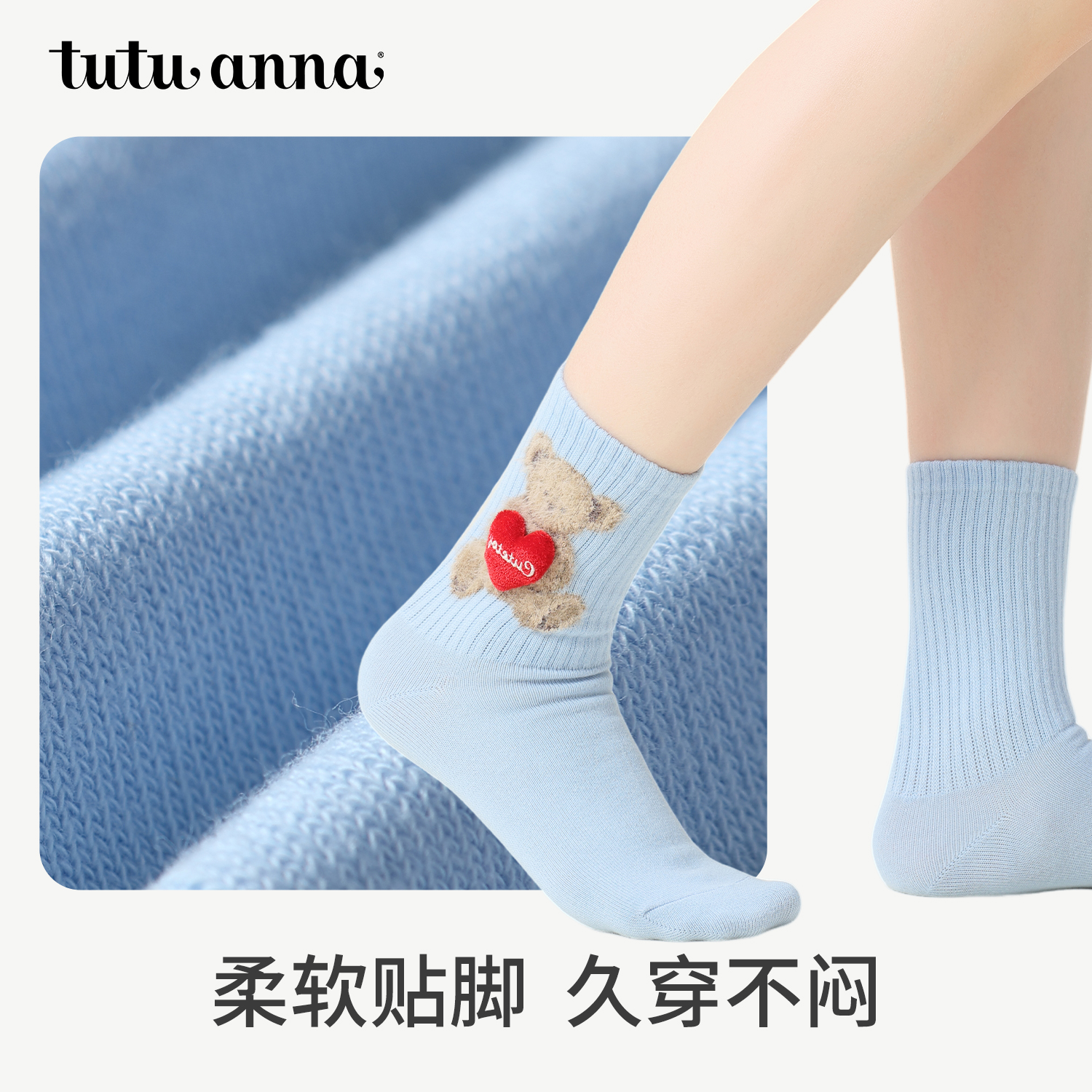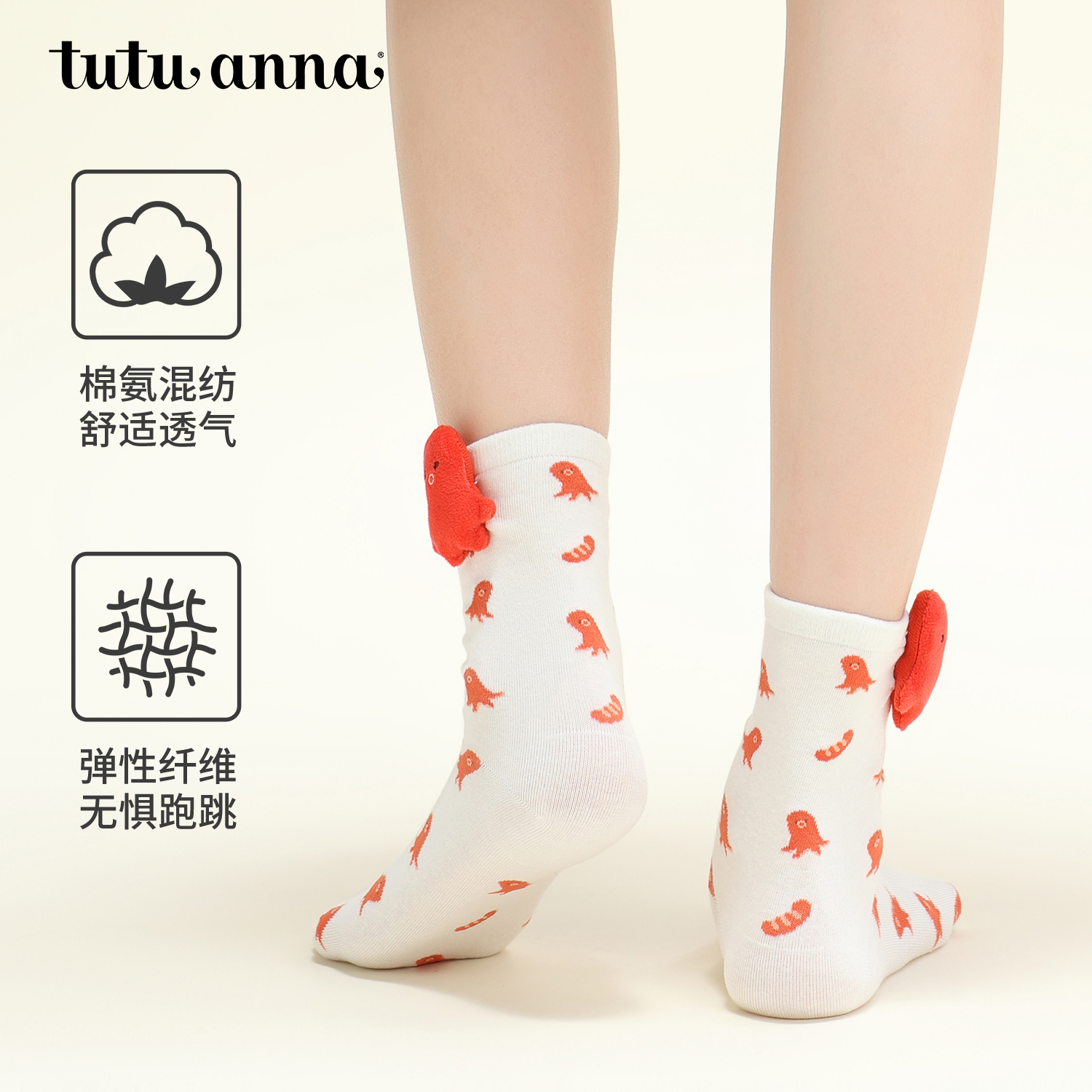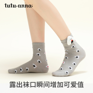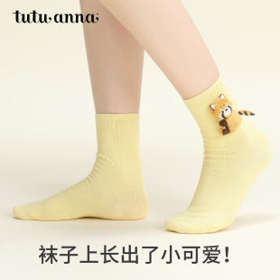 tutuanna秋冬中筒袜女棉质透气可爱卡通动物玩偶女士短袜舒适女袜