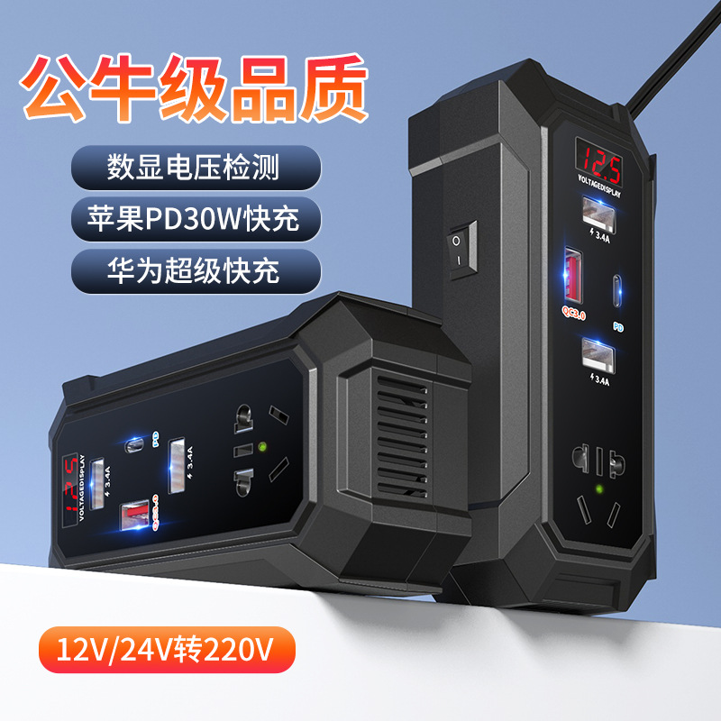 车载逆变器12V24V转220V大功率多功能汽车充电器智能电源插座快充