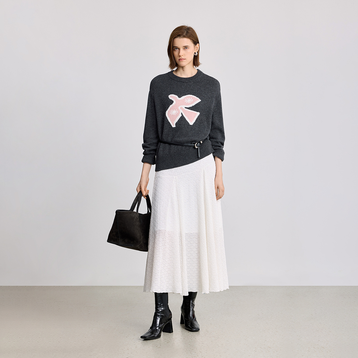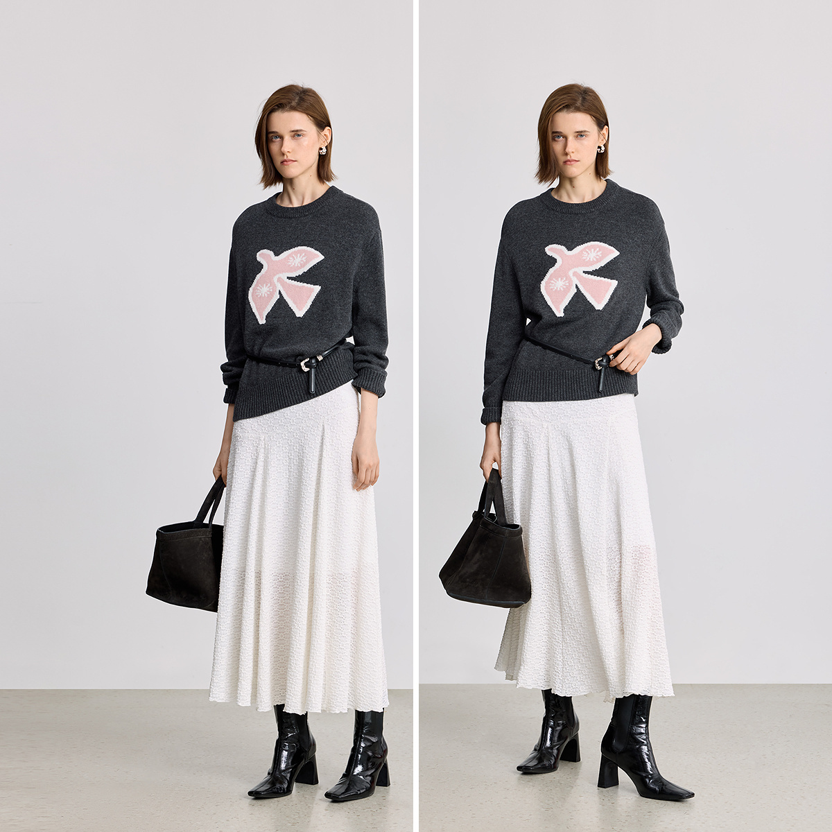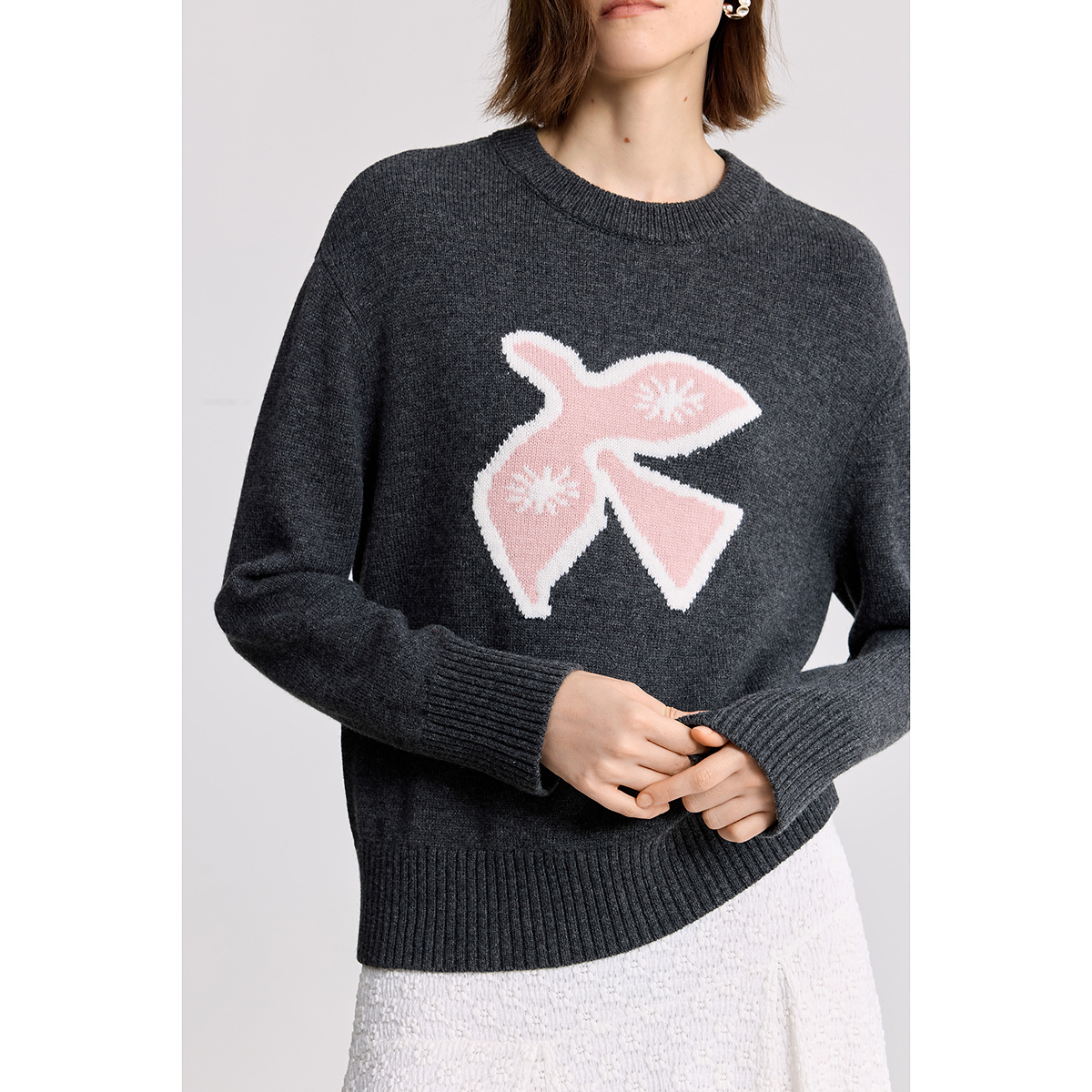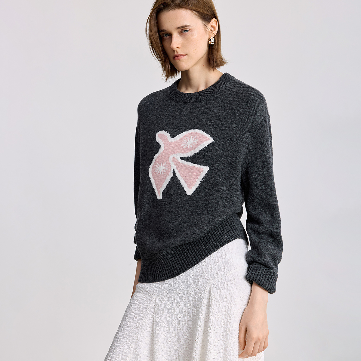 毛衣 羊毛混纺撞色幸运鸽提花加厚套头针织衫 LILY2025冬新款 女装